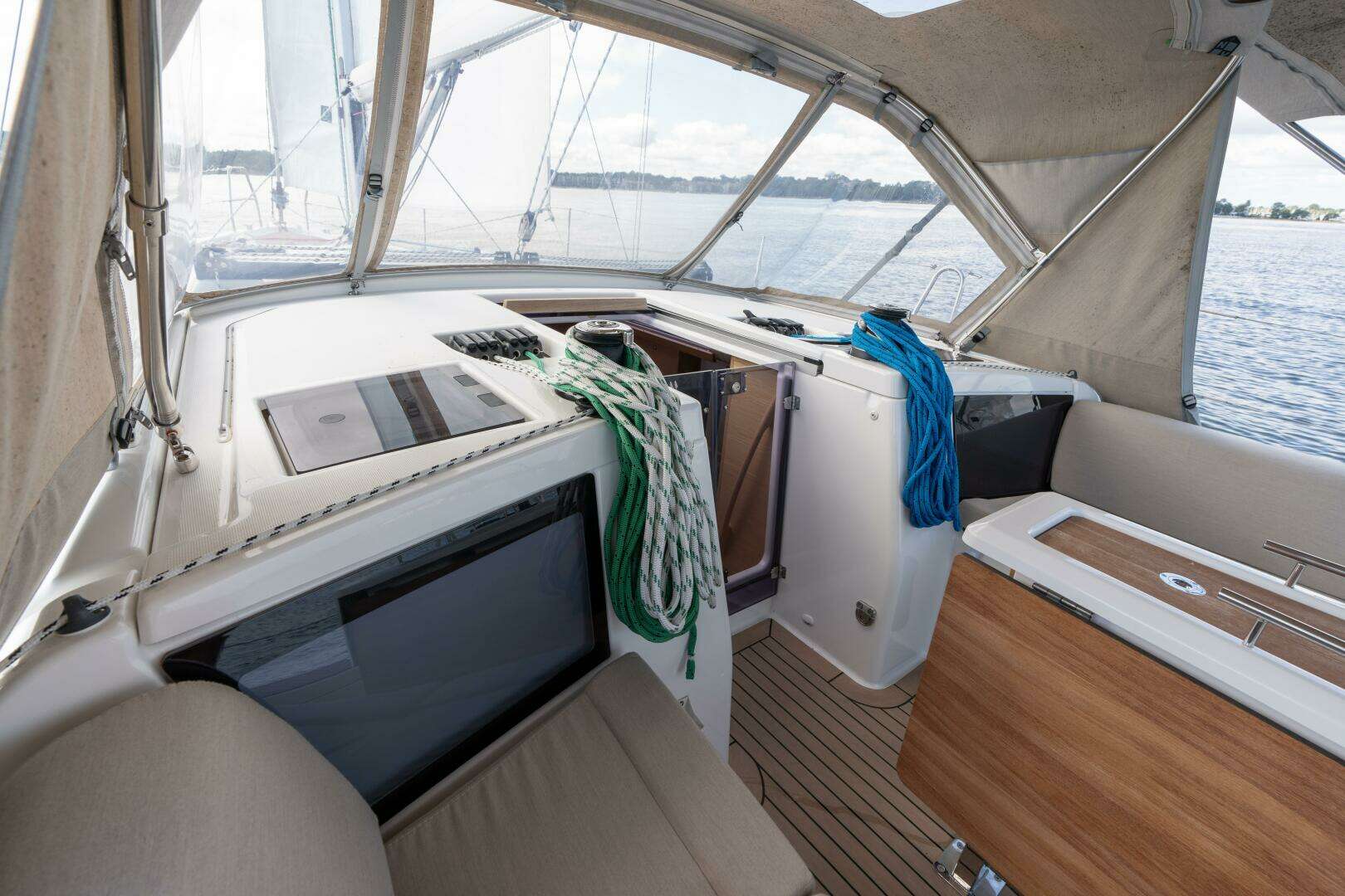 - Cockpit cushions, wood cockpit table, and canvas covers (helms, table, instrument pod)