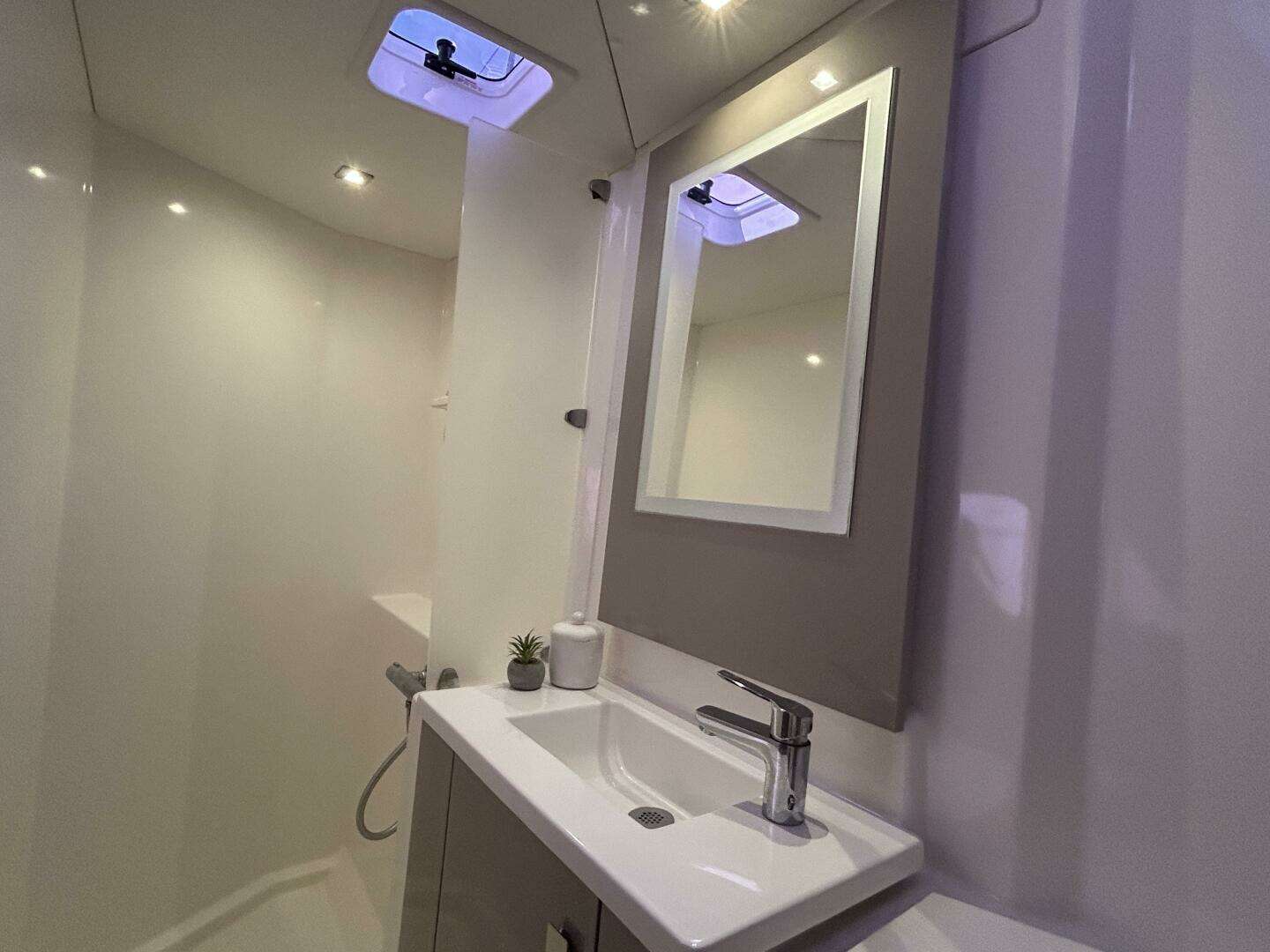 Designed for both comfort and performance, the Isla 40 is renowned for her sporty yet elegant lines, with inverted bows that mirror the styling of larger Fountaine Pajot models such as the Elba 45 and new 41. This owner’s (maestro) version maximises living space, featuring three generous cabins, including a private owner’s hull with a spacious ensuite, plus two well-appointed guest cabins sharing a second bathroom.
