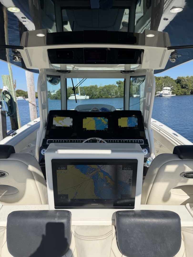 Five (5) Garmin multi-function displays, GMR 424 open-array radar, GHC 20 autopilot, FLIR infrared night vision camera, Garmin VHF, SiriusXM weather, Fusion stereo with JL Audio.