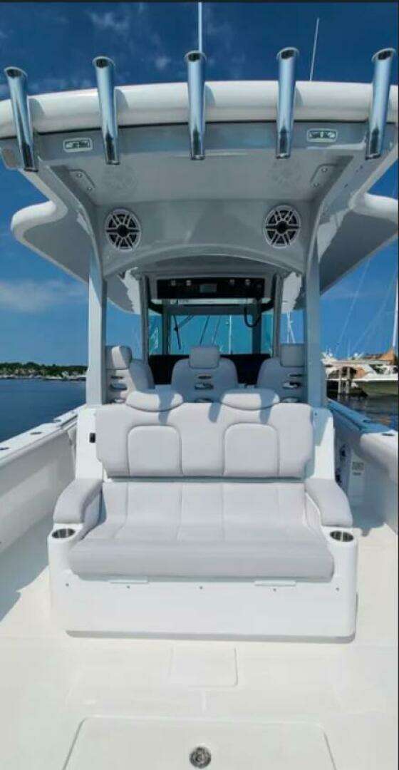 Notable Upgrades: 2023 HCB 39 Speciale “Voloce” Always a freshwater boat and meticulously kept this 39 Speciale is in like-new condition and ready for it's next owners! Designed for the discerning boater who refuses to compromise, “Voloce” combines performance, luxury, and functionality in perfect harmony. The HCB 39 Speciale is far more than a center console—it’s a yacht in every sense, built for those who expect the best in engineering, fit, and finish. With twin Mercury 600 Verado V12s in Cool Fusion White and joystick/autopilot integration, “Voloce” offers an exhilarating, confident ride with effortless control—whether navigating tight marinas or running at speed offshore. Key Features & Upgrades Bow & Forward Lounge As you step aboard, the bow immediately defines the experience: a spacious forward seating area with plush cushions, folding backrests, and deep storage beneath. The forward console lounger with contoured armrests and dual cup holders provides a luxurious place to relax underway. The integrated windlass with stainless steel anchor and polished hardware blend functionality with sleek design. Accent lighting, stainless cupholders, and whisper-grey upholstery with Cool Feel fabric create a contemporary and refined look consistent with HCB’s yacht-quality interiors. Helm & Console At the heart of “Voloce” is a professional-grade helm featuring triple Garmin 8612 glass screens, radar, and dual 1kW Airmar chirp transducers for crystal-clear sonar imaging. A Mercury joystick and autopilot make handling precise and effortless. Three custom captain’s chairs are mounted on a molded fiberglass base—offering bolstered comfort for high-speed running or relaxed cruising. Overhead, the oversized hardtop (painted Whisper Grey) features integrated spreader lights, RGBW lighting, and a built-in freshwater cockpit shower. Cockpit & Aft Entertainment Zone Moving aft, the cockpit reflects the HCB design philosophy—form meets function. “Voloce” features a rear-facing cockpit seat with a fold-down bait prep station, transom cooler seats port and starboard, and a transom sleigh seat with integrated 30-gallon livewell. This area is equally suited for serious fishing or entertaining. Ten gunwale-mounted rod holders, deep-drop swivel mounts, and transom rod holders (3 added) provide capability for any offshore pursuit. For entertaining, the summer kitchen with Corian countertop, stainless sink, refrigerator, and grill allows you to host and grill out for the day without leaving the water. RGBW lighting, upgraded JL Audio with multiple subwoofers and tweeters, and underwater lighting (six total—four stern, two bow) make evenings aboard spectacular. Cabin & Interior Comfort Below the helm, the cabin of “Voloce” surprises with its space and finish. Featuring a double berth, enclosed head with macerating toilet and vanity, and climate-controlled comfort, it’s perfect for day escapes or weekend overnights. SeaDek flooring in Camel/Mocha/Black adds warmth, while Grey Onyx countertops, light-grey textured upholstery, and recessed lighting create a refined, contemporary space that invites rest after a long day on the water. Performance & Build The 39 Speciale’s Kevlar-reinforced, hand-laid hull with 23° deadrise delivers a smooth, confident ride. With a beam of 11'6", she’s remarkably stable at rest or underway. Combined with her 40” draft (engines down) and 525-gallon fuel capacity, “Voloce” offers exceptional range and offshore capability. Whether fishing, cruising, or running as a superyacht tender, this vessel performs with the confidence and refinement that have made HCB an industry leader. |