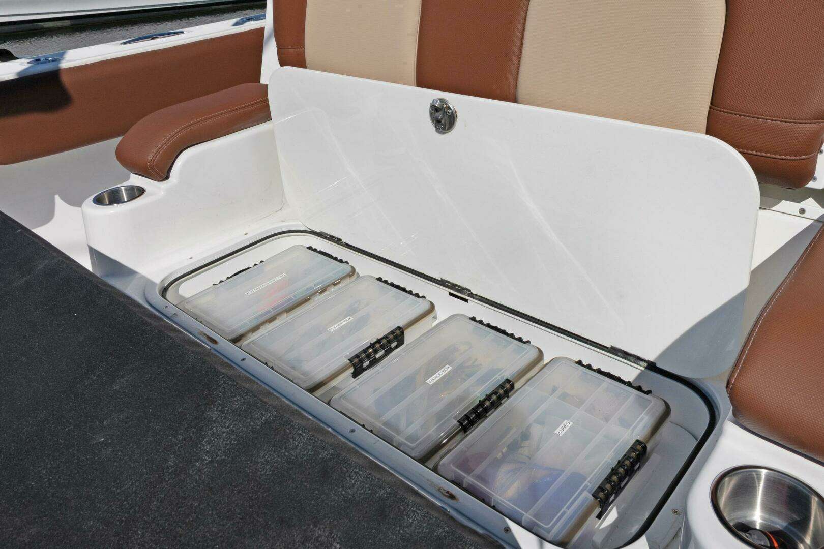 Rear Facing Cockpit Seating with Fold Down Bait Prep Station