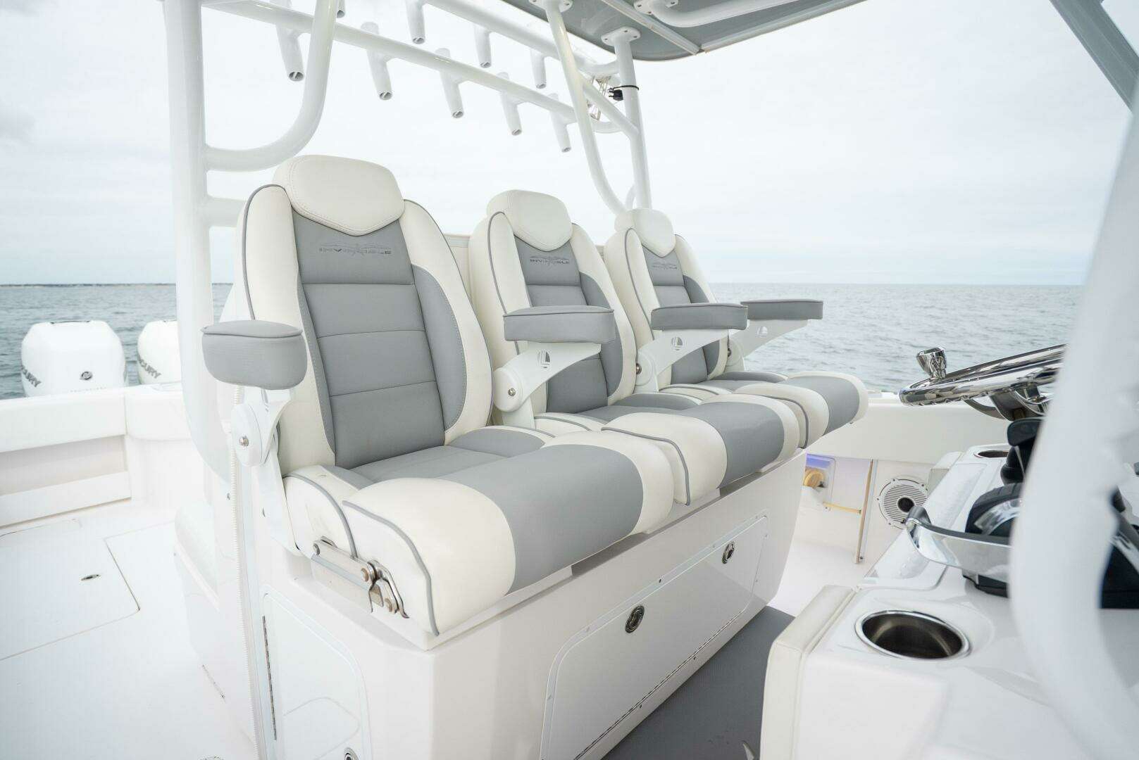 The Invincible 39 Open Fisherman is a serious offshore machine with triple 400 outboards which allow for speeds in excess of 70 MPH. The 550-gallon fuel capacity gives you the extended range needed for those long trips to the fishing grounds.