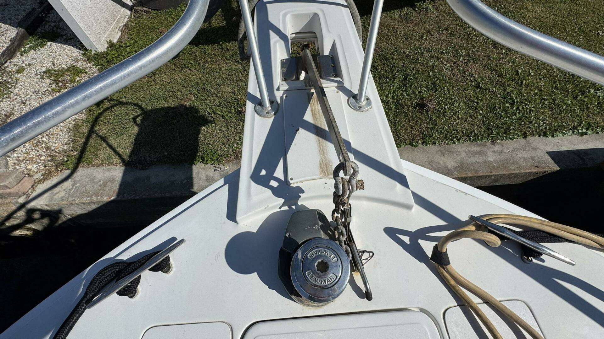 - Lewmar anchor windlass with foot controls and flybridge remote