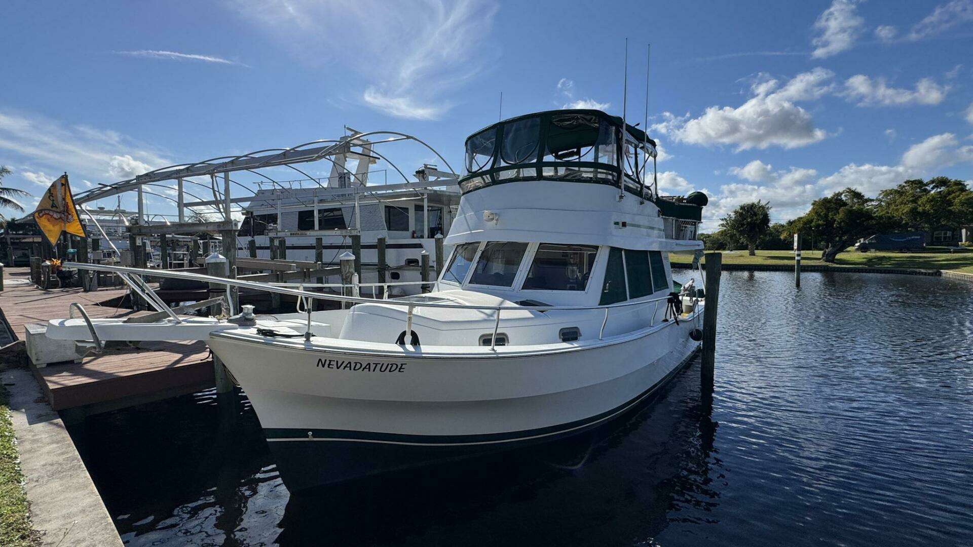 Nevadatude is a well-equipped 2000 Mainship 390 and proven Great Loop veteran, powered by a meticulously maintained Yanmar 300HP diesel. With solar, watermaker, washer/dryer, new bow thruster, and tender, she is turnkey and Bahamas-ready.