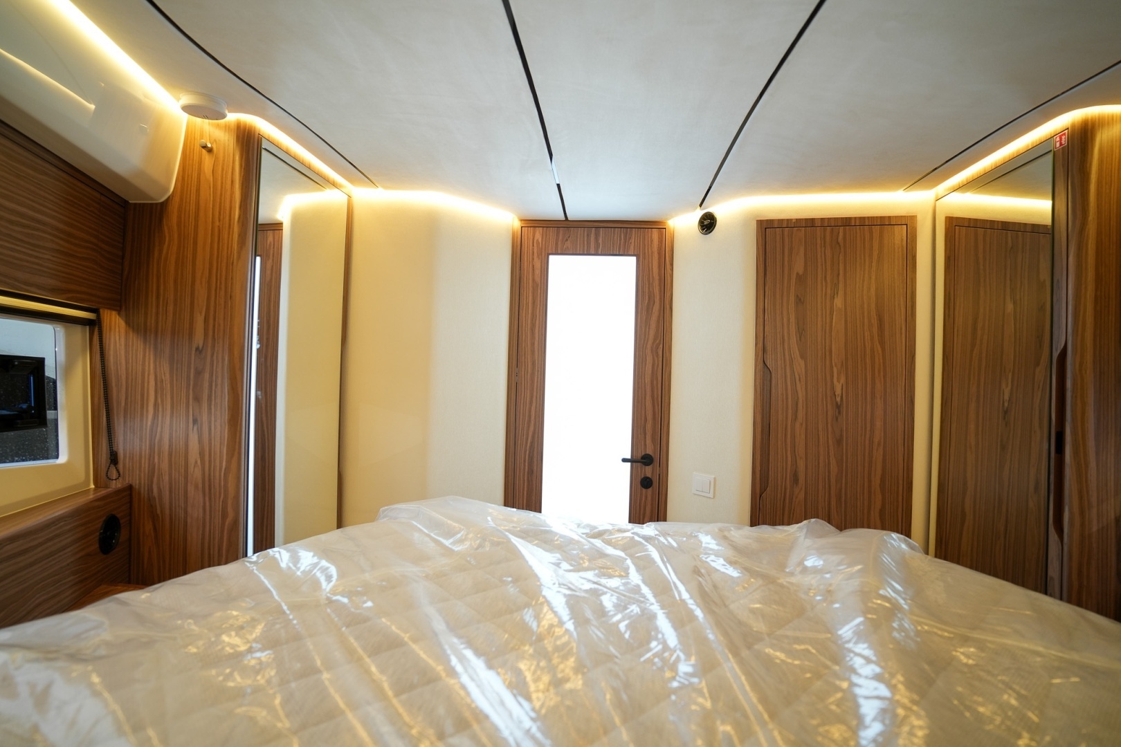 The accommodation on the Marex 390 is designed to deliver true home comfort on the water. Both the forward and midship cabins feature enlarged double beds with premium mattresses that improve sleeping quality. Spacious wardrobes and generous standing height add to the overall sense of comfort. In the midship cabin, a sofa serves as a cozy seating area or an additional sleeping space for children. A separate shower contributes to the home-like atmosphere, while large windows on the lower deck fill the space with natural light, creating a bright and airy ambiance