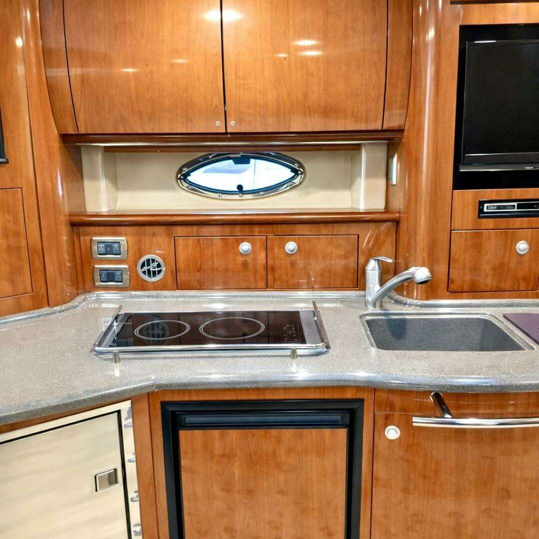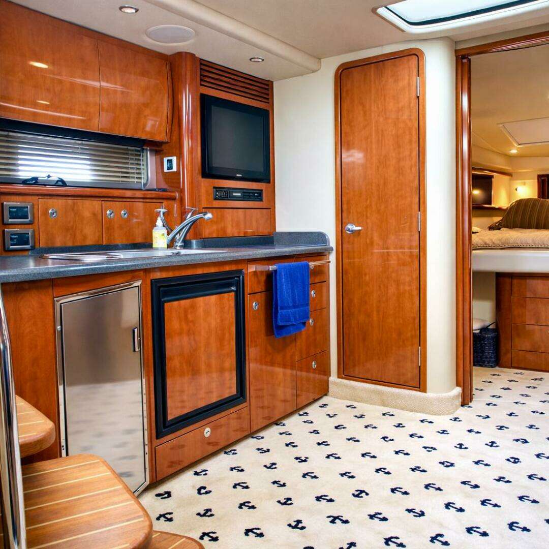 Designed to get noticed, this completely new 390 Sundancer features elegance at every turn. A sleek, low-profile helm plus glove-soft cockpit seating makes this newest member of the Sundancer family an ideal place to spend a weekend of fun. Below, the gorgeously appointed salon includes a fully equipped entertainment center, beautiful wood crafted galley and separate conversation area that converts to a bed for overnight guests.