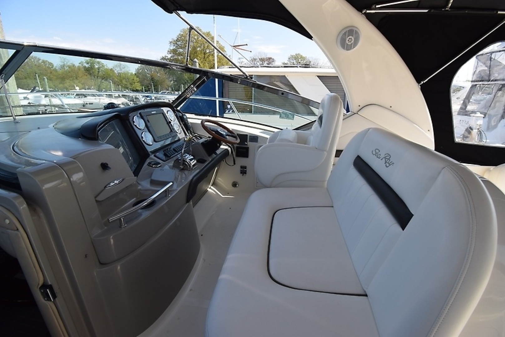 Check out this freshwater kept 390 Sundancer available for immediate sale. Her original owner kept her on a lake until 2012 when she was brought to the DC area and docked on the Potomac River. She's never seen salt or brackish water! Brand new upholstery in the cockpit this spring, new eisenglass over the windshield and side glass just installed, new eisenglass in the aft canvas in 2025, and new bimini top canvas 4 years ago. She's been lovingly used and maintained and is ready to ride for her next owner. Featuring low hour Mercruiser 8.1 Horizon engines and a Kohler generator for reliable power away from the dock. Boats this nice don't last long, so call today for an appointment to get aboard. Easy to see just outside our nation's Capitol.