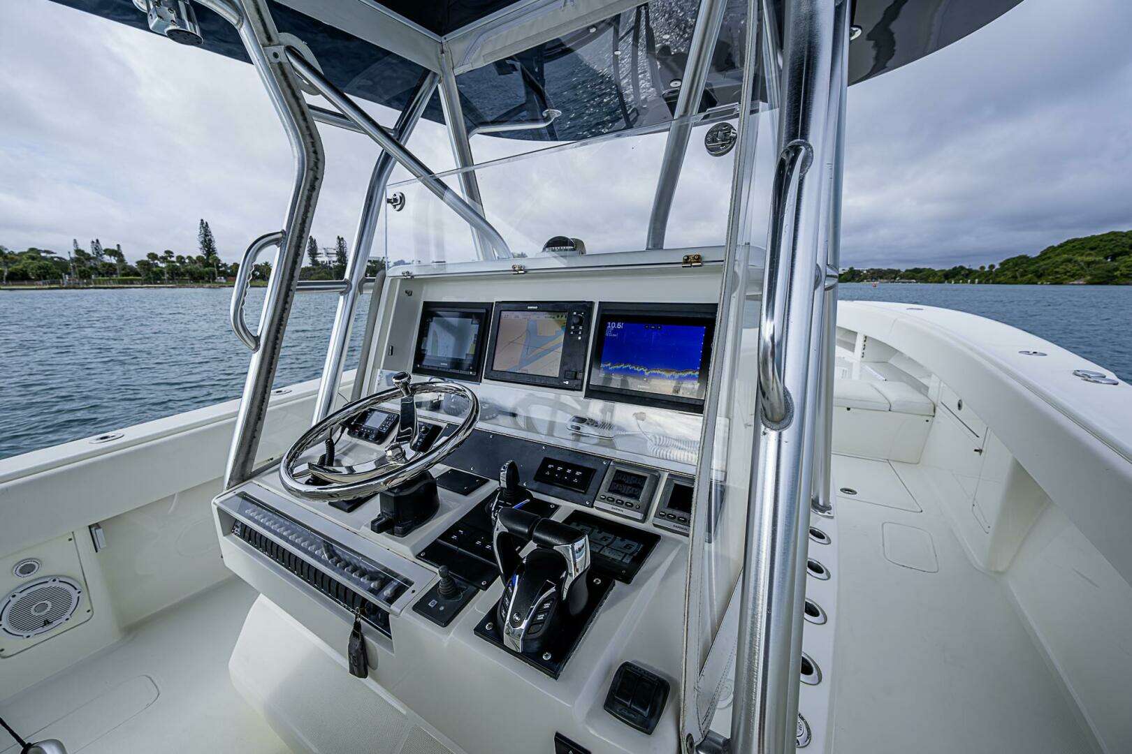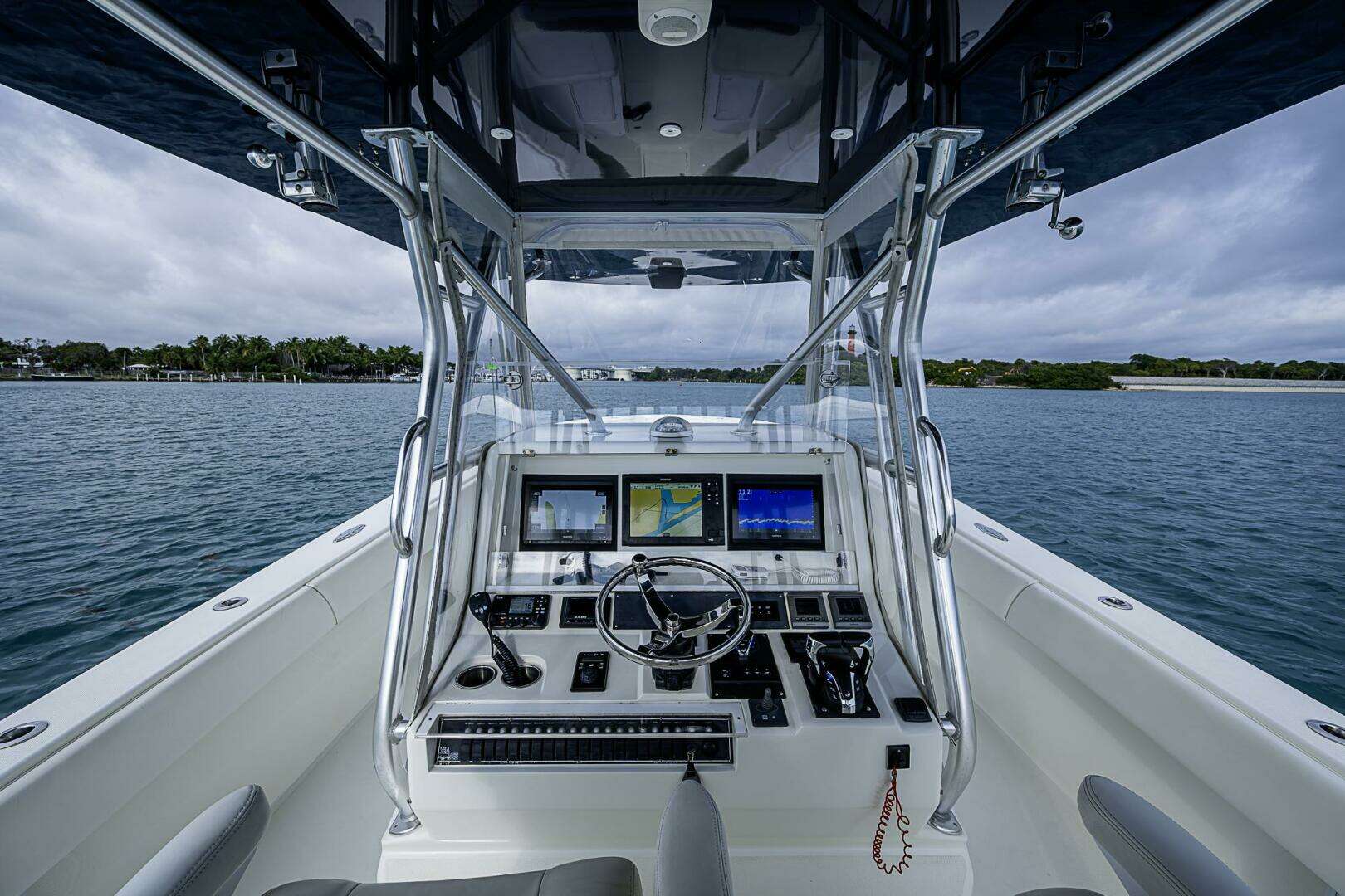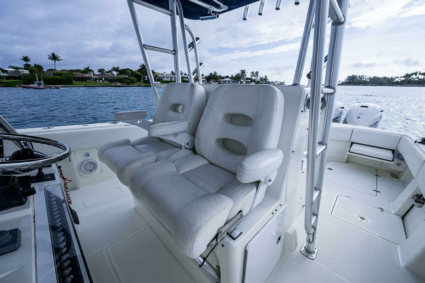 Full size hardtop, LED light bar, FLIR night vision, bow thruster, forward seating with flip up backrests, refrigeration
