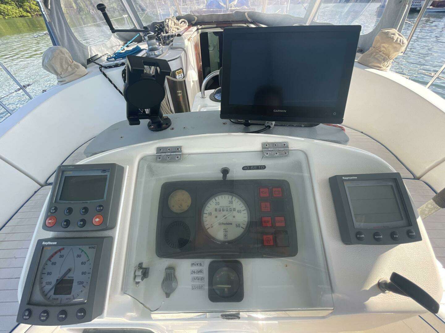 This 1993 Beneteau Oceanis 400 is a well-maintained, two-cabin cruising sailboat, ideal for a couple or small family seeking comfort, reliability, and easy handling. The desirable Pullman berth layout offers excellent space and privacy, with generous headroom throughout. Recent upgrades include new 12V refrigeration and freezer systems (2024), a Rainman portable watermaker, air conditioning, heating, and a modern Garmin chart plotter. The boat is well equipped for extended cruising with 830 watts of solar, a Fisher Panda diesel generator, large battery capacity, and updated navigation electronics. On deck, she features a new Lofrans windlass, Rocna anchor with upgraded chain, dinghy davits, solar arch, and a full cockpit enclosure with new bimini and dodger. Powered by a reliable Perkins 50 hp diesel engine, this Oceanis 400 is a comfortable and capable cruiser ready for new adventures.
