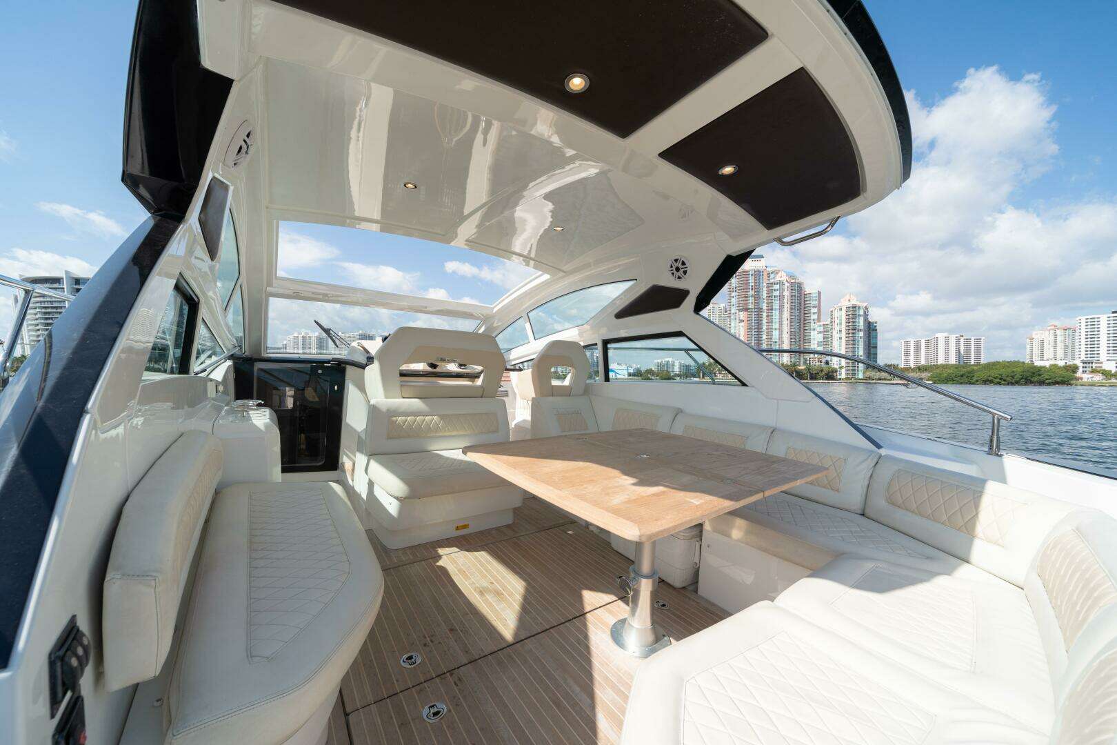 If fun on the water is the objective—and it usually is—then this boat is purpose-built for the task. Tis the Seasun is an excellent example of what a 40’ express cruiser should offer: ideal sleeping quarters below deck and an open, well-designed cockpit perfect for entertaining.