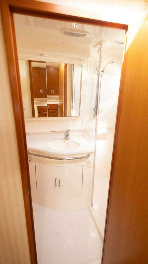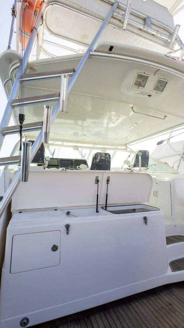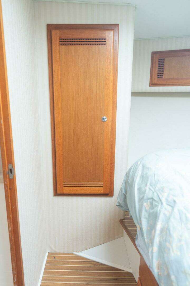 Sleeps two owners and guests in one Stateroom plus settee sleeps two for a total of four berths. One Head with shower. Standard 50' Express layout with teak and holly sole, queen bed forward and a hide-a-bed in Salon area. Custom shelving in floor area of Salon. Large stand-up rod storage.