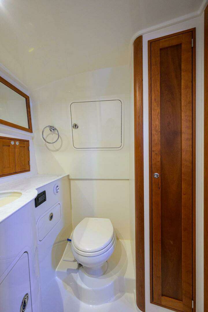 The vessel is equipped with Mercury Marine’s Skyhook digital anchoring system, a GPS-based positioning feature that automatically holds the boat on station using engine and joystick input. This eliminates drift from wind or current and is invaluable when waiting at fuel docks, and bridges.