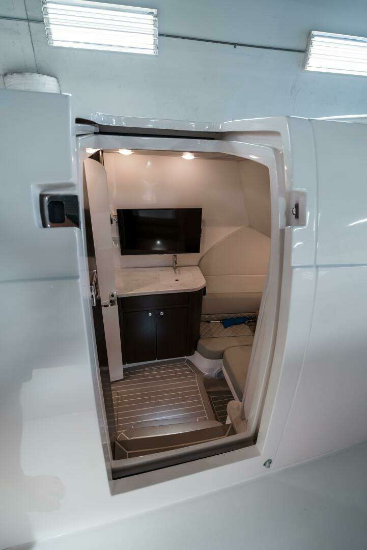 - Hull-Side Dive Door; Fold-Down Bench Seat