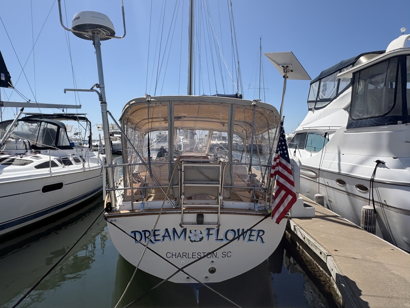 Dream Flower is in a slip at Charleston Harbor Marina and Resort in Mount Pleasant, SC.