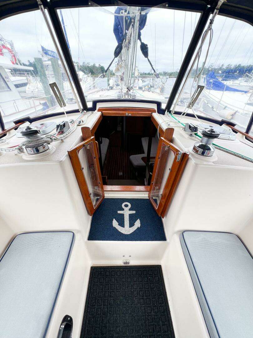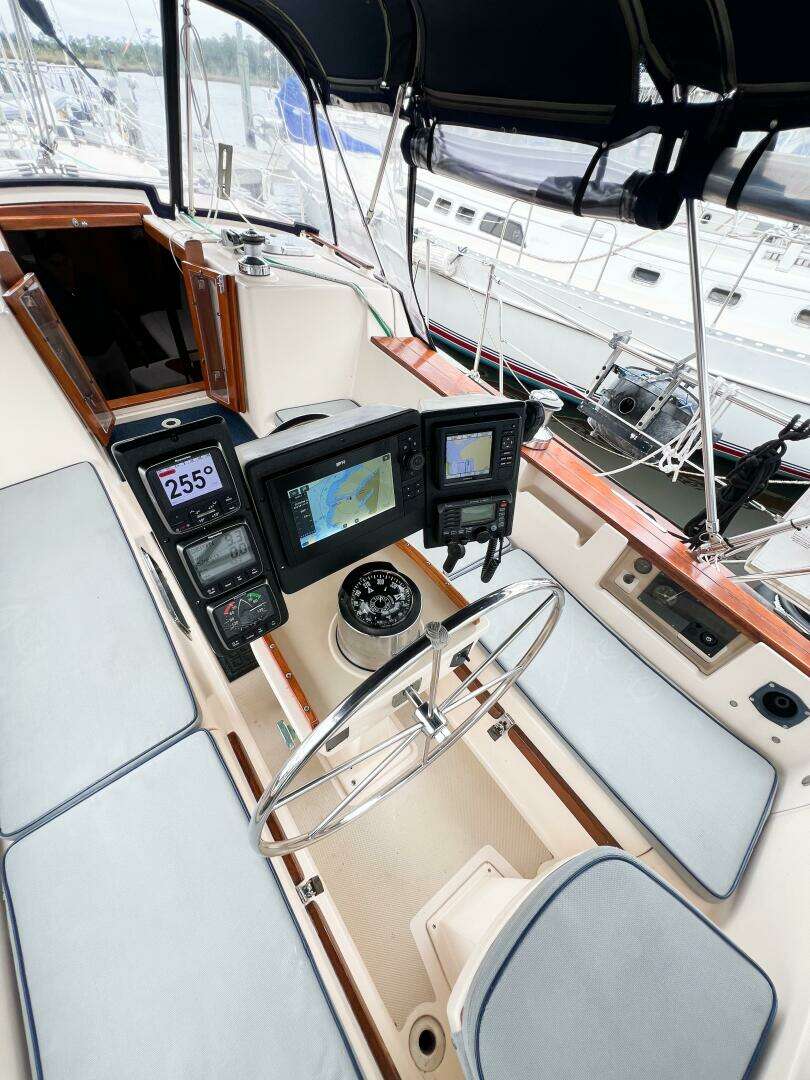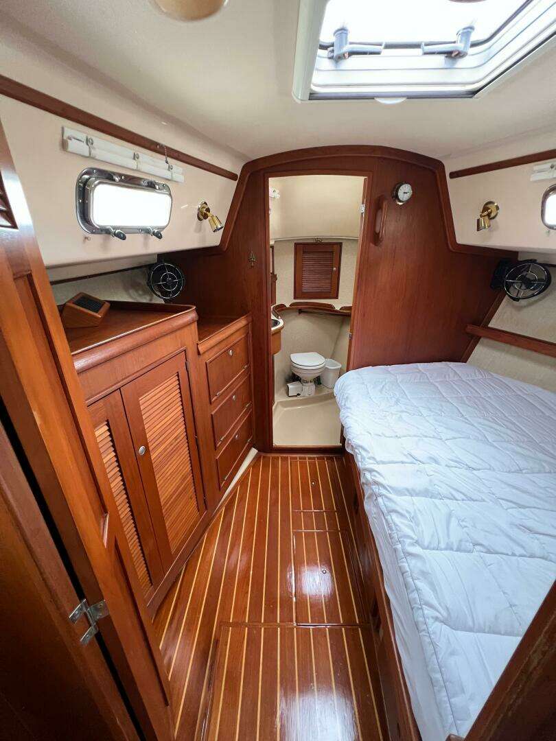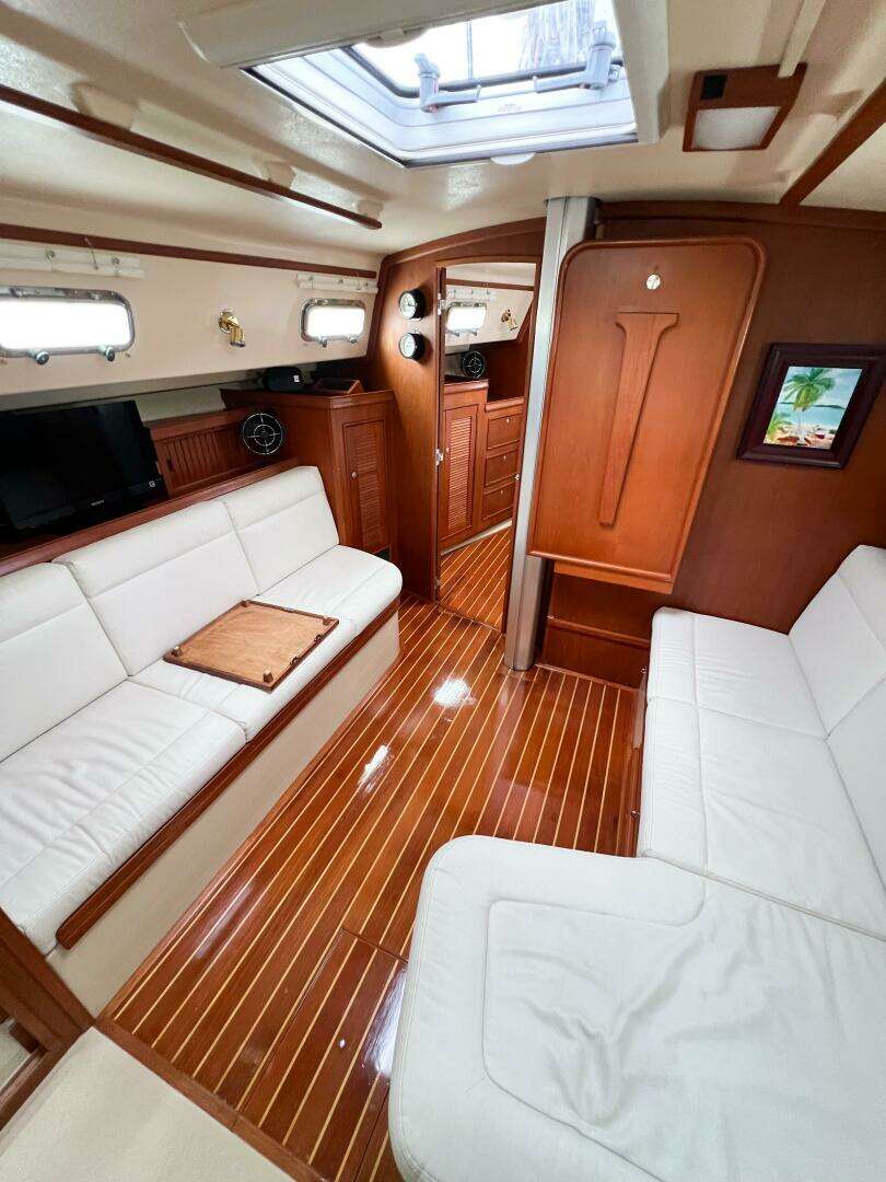 She combines Island Packet’s legendary build quality with modern systems and comforts, set up for singlehanded sailing, powered anchoring, and off-grid capability.