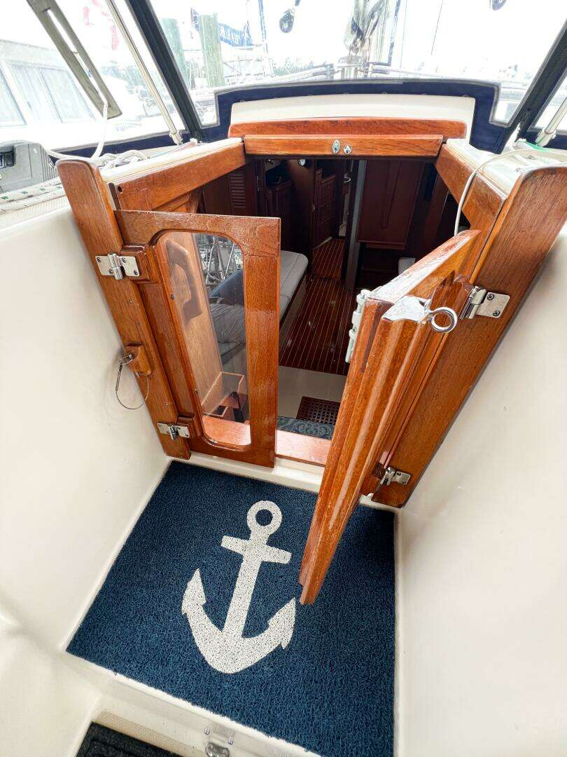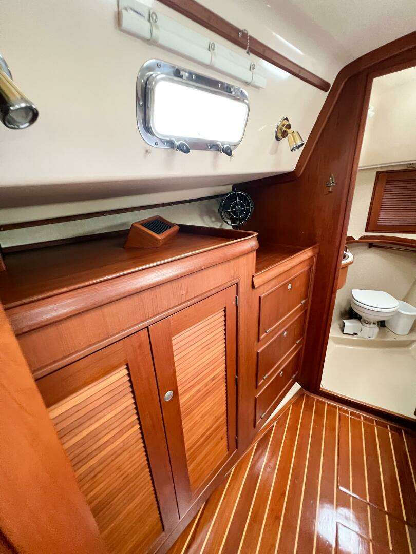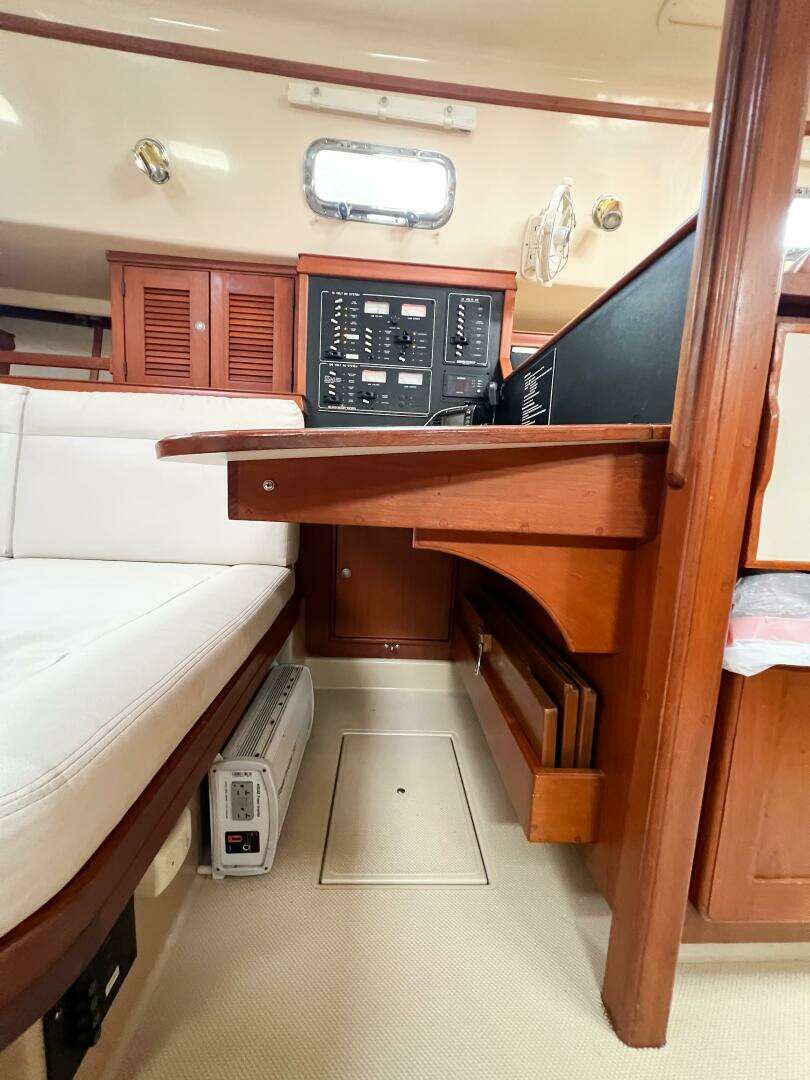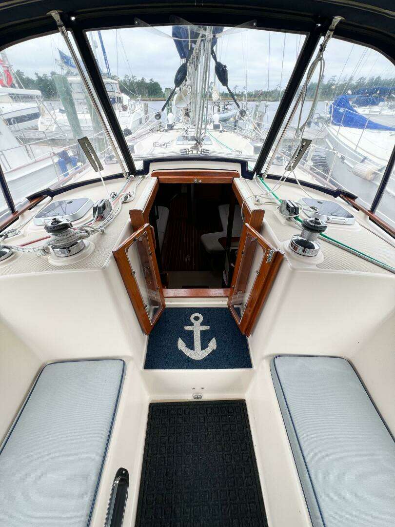 She combines Island Packet’s legendary build quality with modern systems and comforts, set up for singlehanded sailing, powered anchoring, and off-grid capability.
