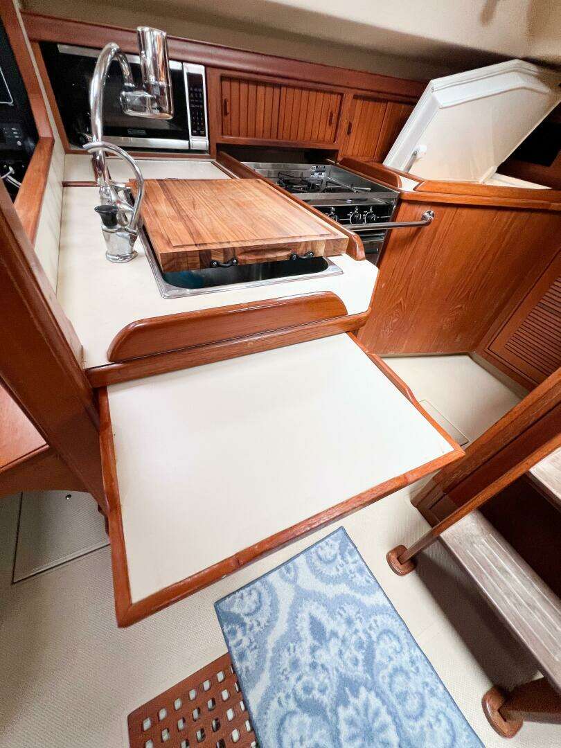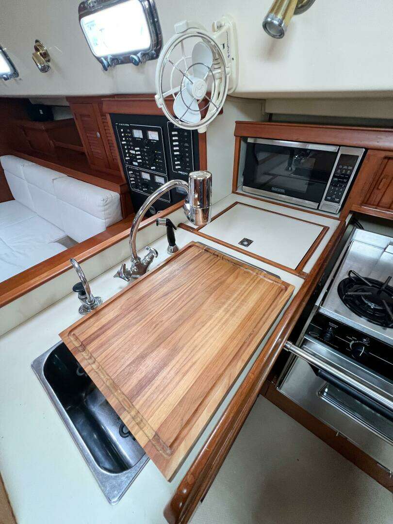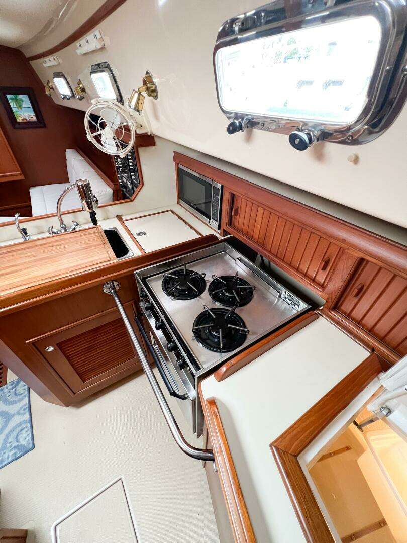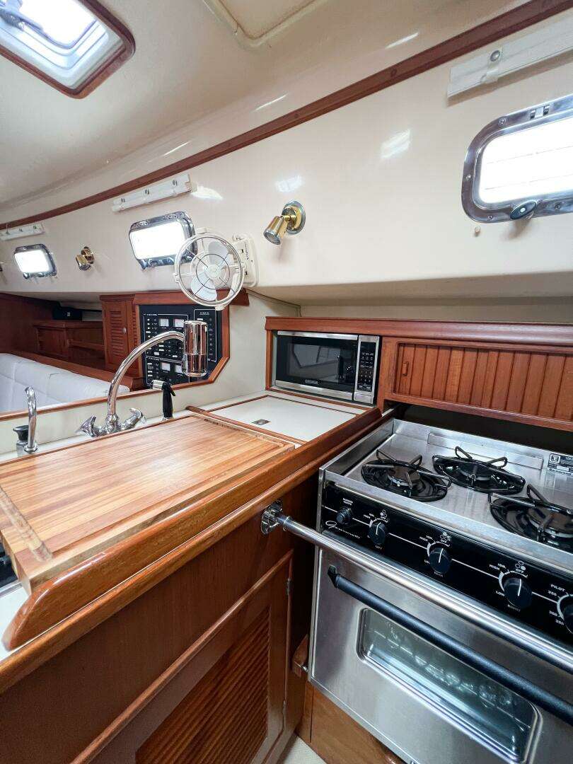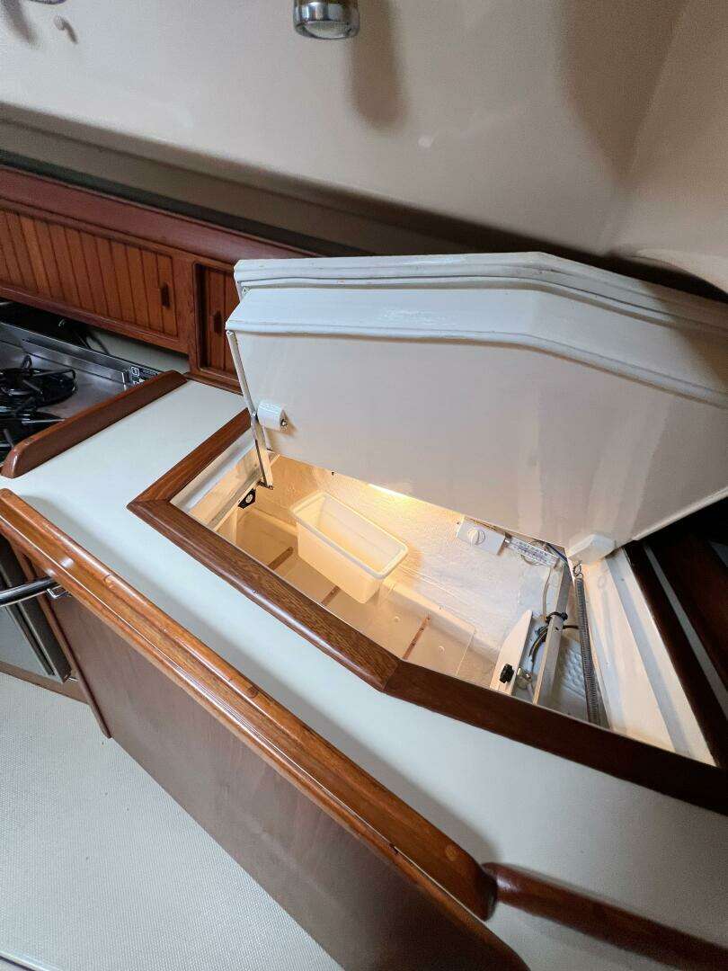 - Generous galley with refrigeration and freezer (thick foam insulation for efficiency)