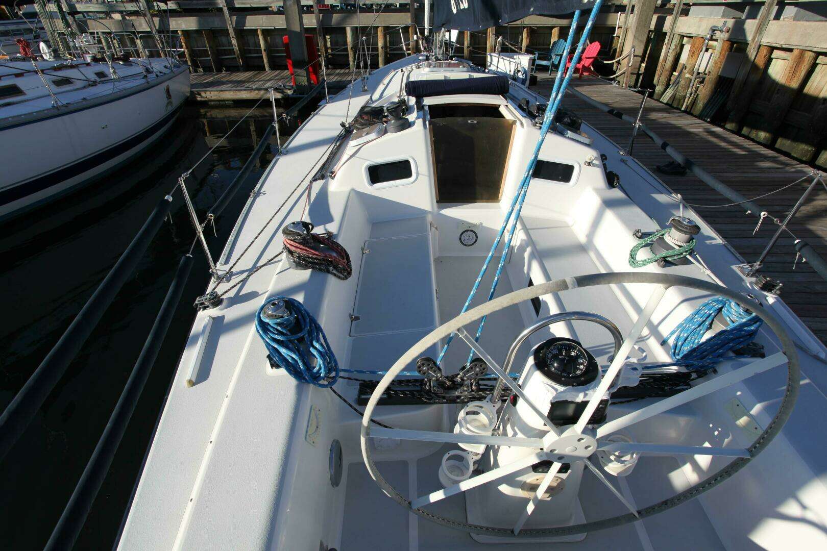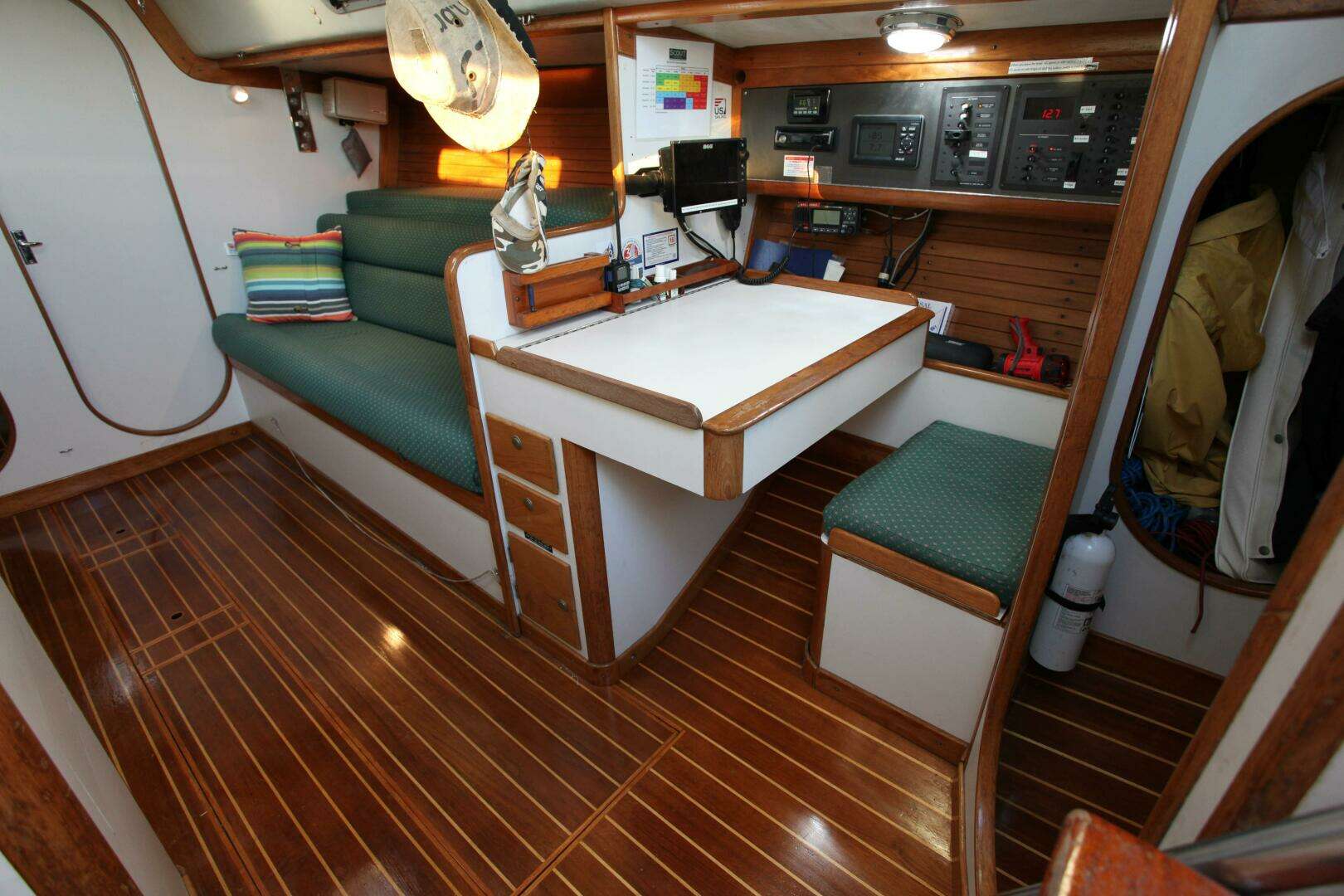 - Cruising gear: (2) biminis (green canvas in storage), (1) dodger, salon table & cushions