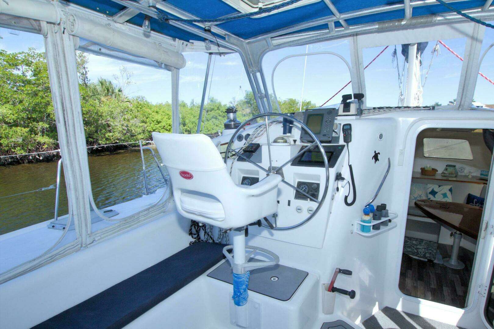 Introducing the Manta 40 Catamaran, Scout, a remarkable vessel that combines performance and comfort. With an overall length of 40 feet, this catamaran is crafted from durable composite materials, ensuring a strong foundation and a robust sailing experience. It features two powerful Volvo MD2040 inboard engines, each delivering 40 hp, providing reliable propulsion for your adventures on the water. The Manta 40 boasts a cruising speed of 7 knots and a maximum hull speed of 8 knots, making it an efficient choice for long voyages, with an impressive range of 900 miles under power. She is a delight to sail and both the exterior and interior provide a comfortable setting for those special anchorages.The vessel includes a well-appointed master suite in the port hull and two guest cabins in the starboard hull with a shared head/shower, enhancing comfort for all onboard. These boats were not intended for the charter trades. What they were designed for is to take a cruising couple world wide with occasional guests. They are by far the easiest catamaran to sail thanks to its Camberspar Jib and all control lines led to the cockpit. Hardly ever a need to leave the cockpit while under sail. Scout also boasts a full enclosure with screens.