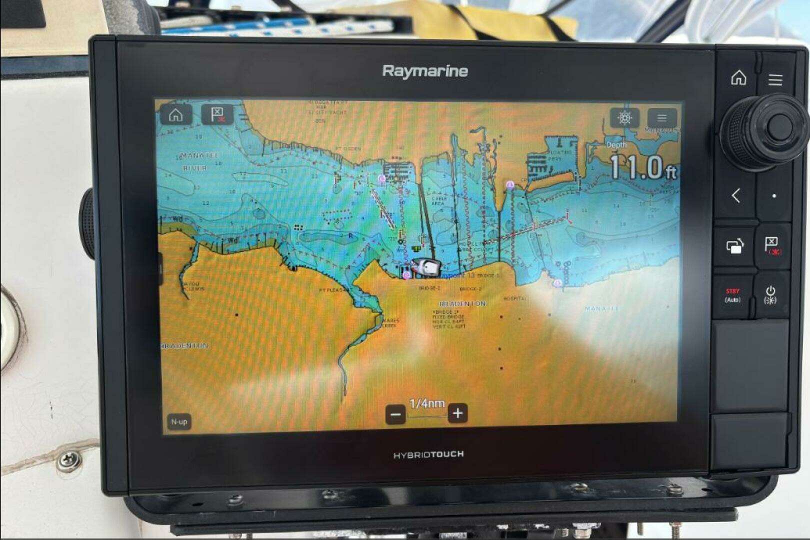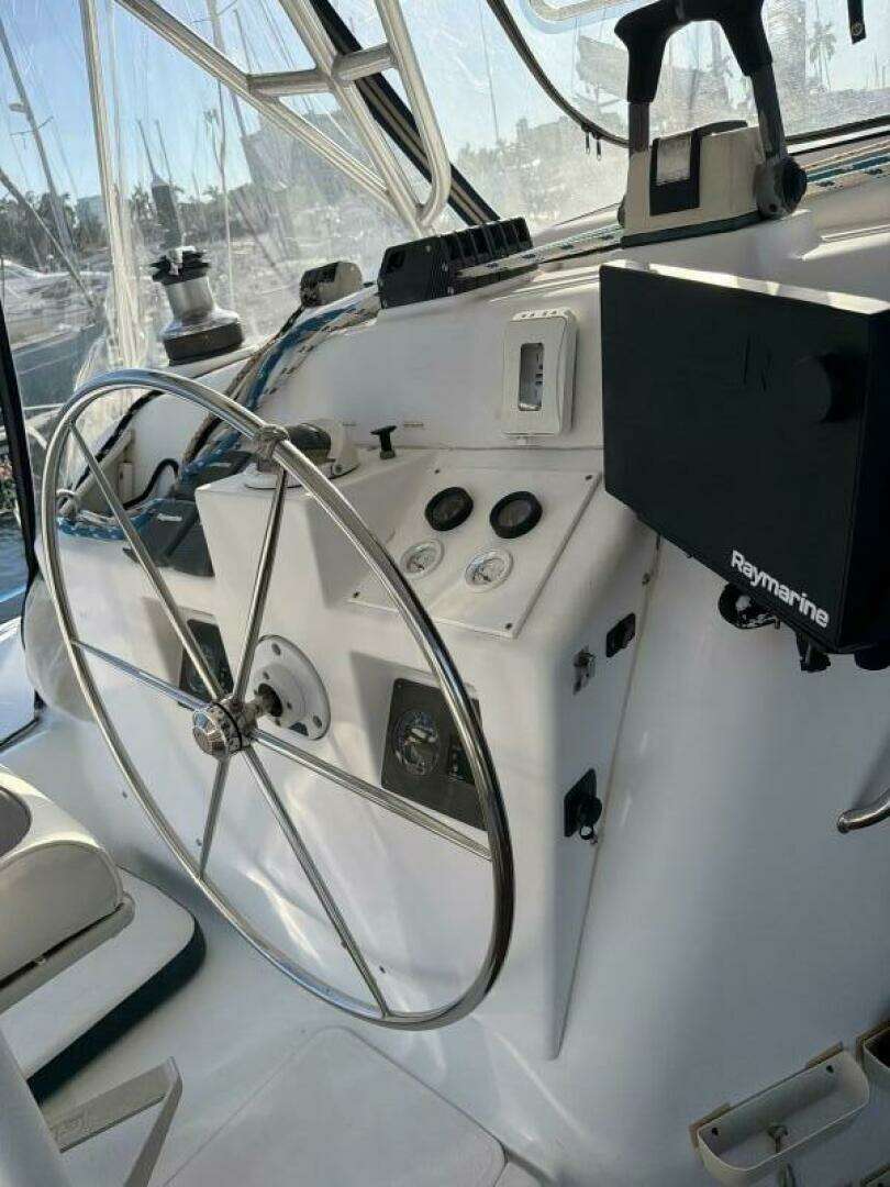 - Newer baffled aluminum 95-gallon water tank located under starboard aft cockpit bench (will not wake up your guests) with remote gauge at Nav Station and independent deck fill fitting.