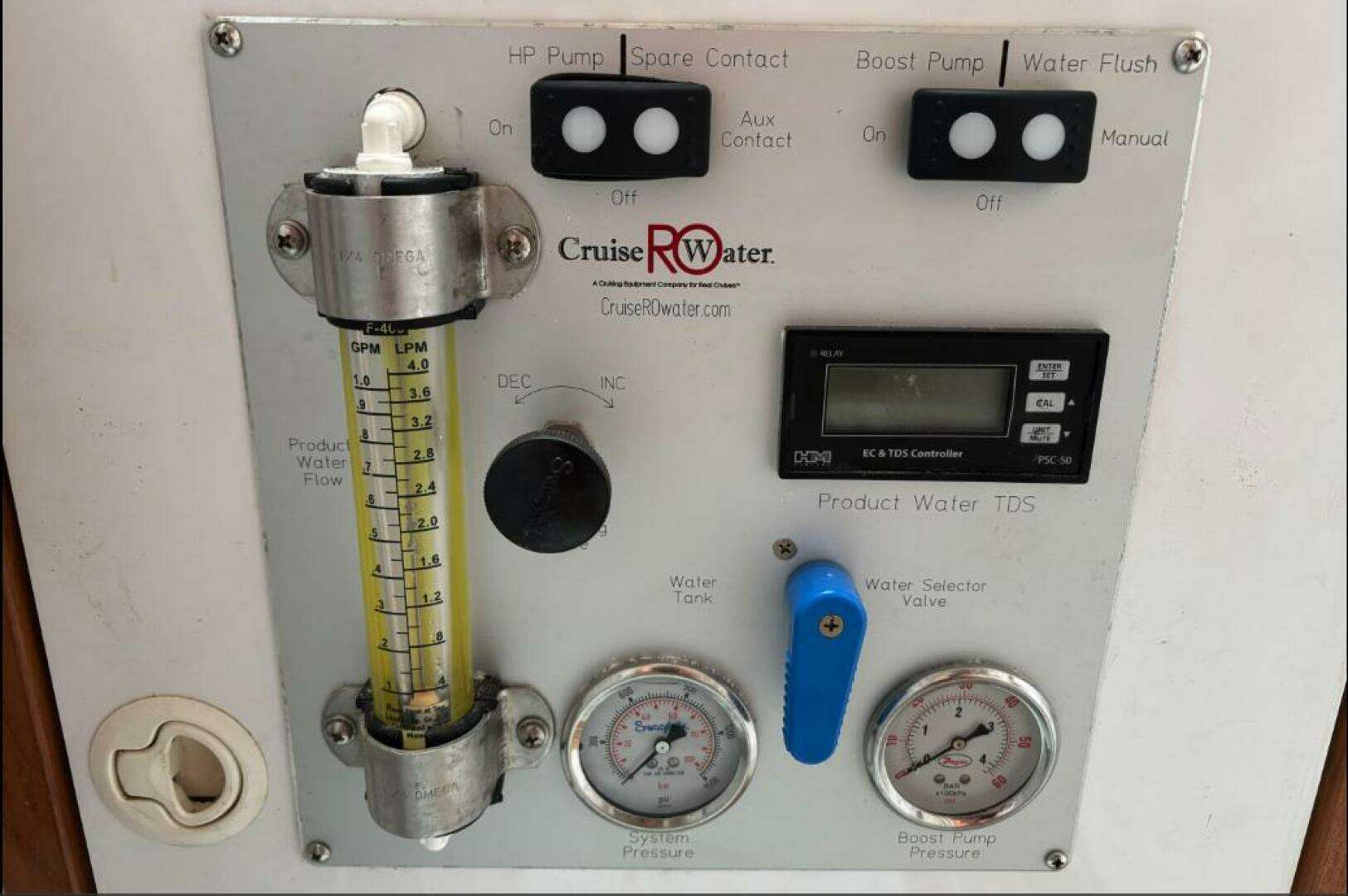 • Separate raw water thru-hulls for air conditioning, water maker, engines and generator. Crustacean flushing system and internal GROCO intake thru-hull clearing built-in.