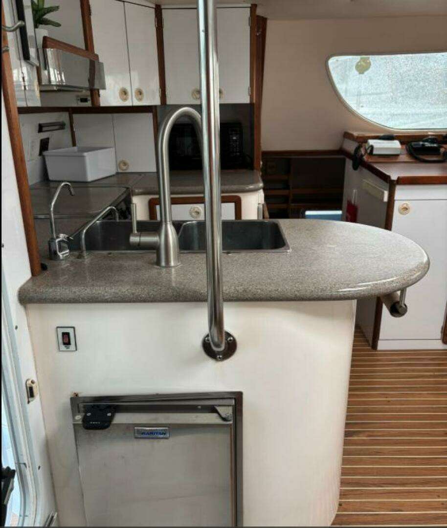 • U-shaped galley up located port aft in Main Salon with every convenience for the gourmet.