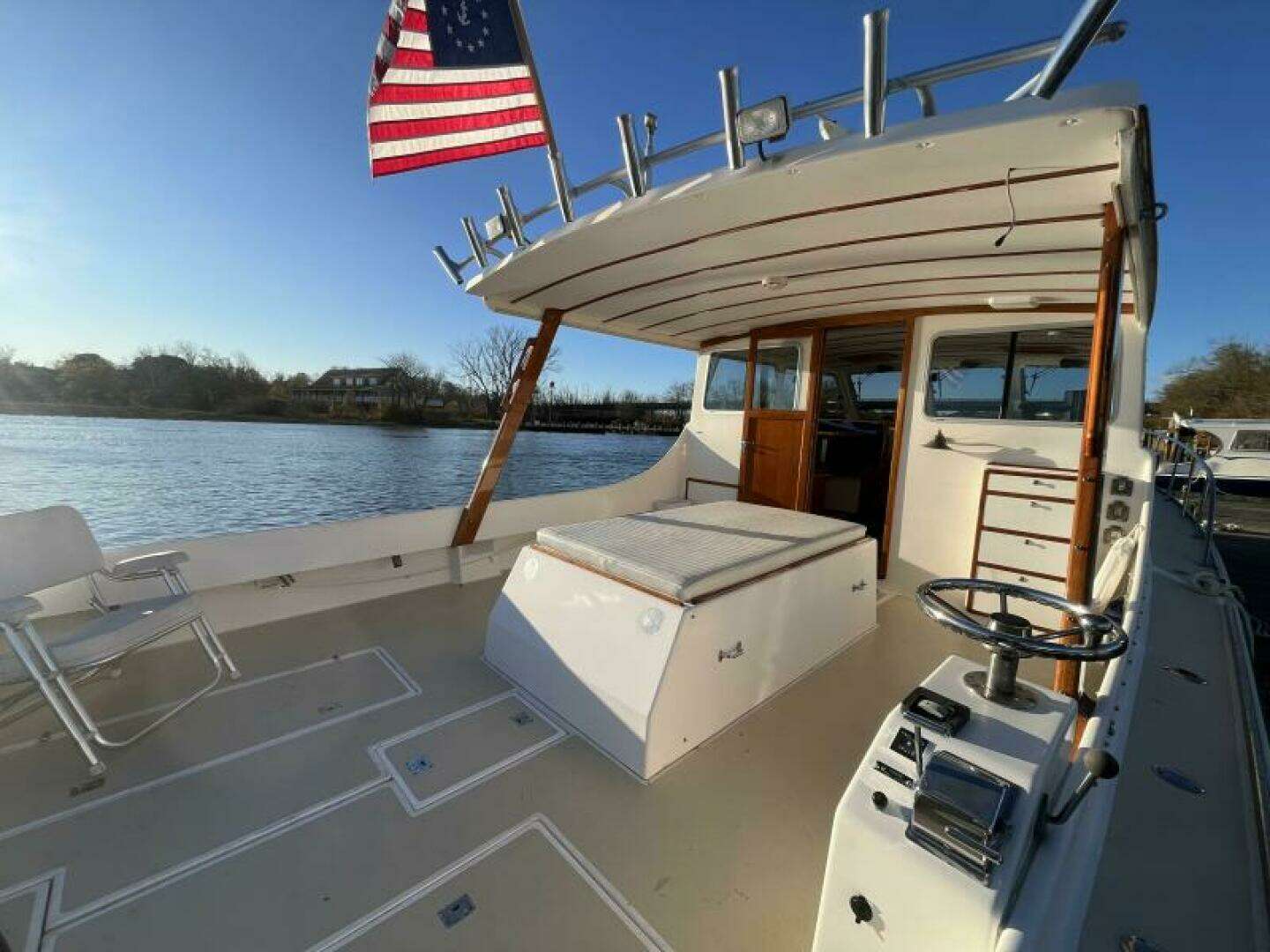 Harmony is a fine example of a Chesapeake Bay deadrise yacht, built by the Mathews Brothers on the Eastern Shore of Maryland. This 2002 Mathews 40 is both comfortable for cruising, and an excellent boat for entertaining given its spacious aft deck. At the heart lies the bulletproof 500 Yanmar engine, renowned for its all-mechanical design, ensuring seamless operation and outstanding reliability. Harmony is a masterpiece of versatility and elegance, making it an ideal choice for leisurely cruises along the Chesapeake, a picture perfect fishing expedition or embarking on the Great Loop.