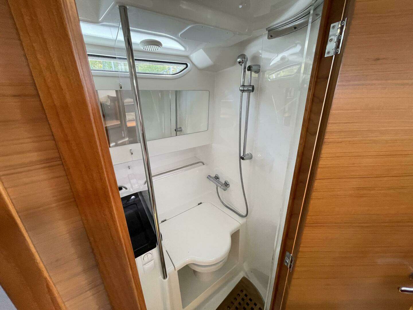 Below deck, you will find two separate cabins with space for two couples or a family of four. Spacious bathroom with toilet, shower and sufficient headroom.