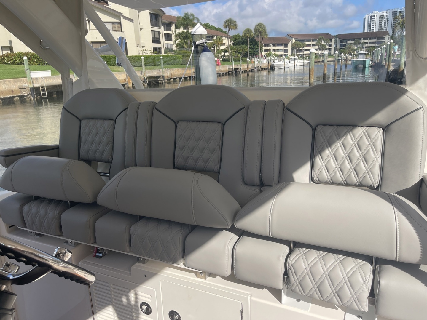 - Aft mezzanine seating behind helm w/ AC vents