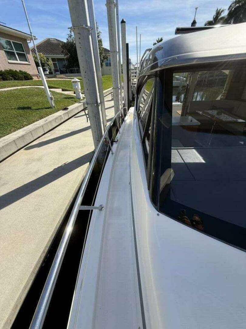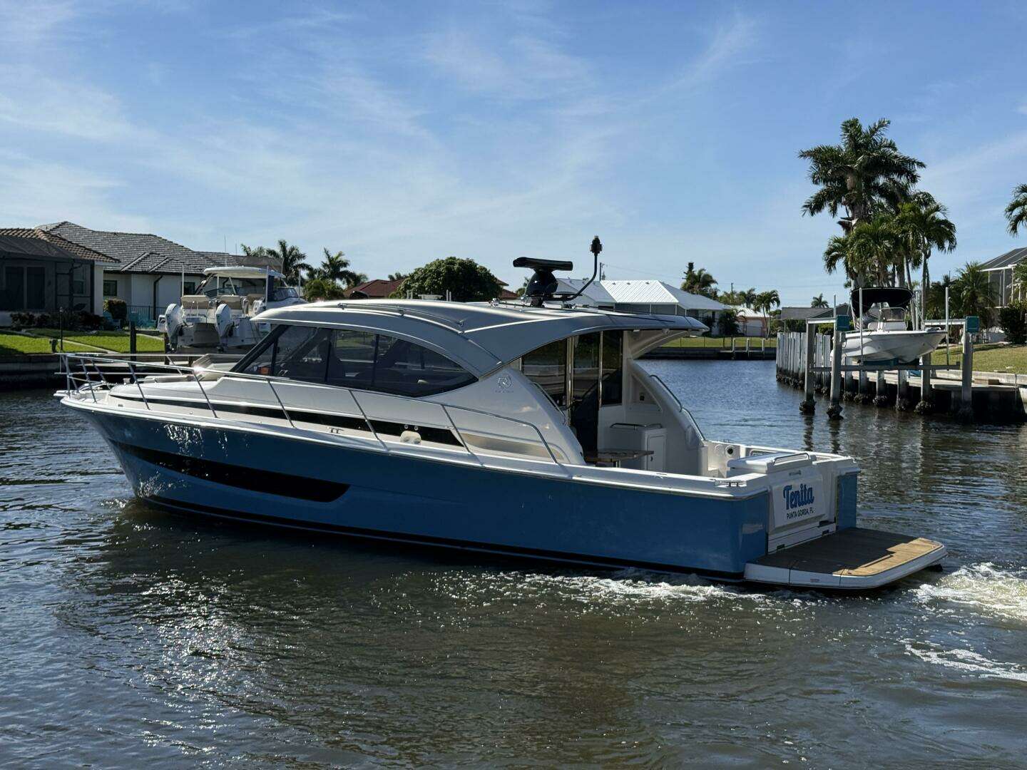 This 2021 Riviera 395 SUV is in near new condition. It stands out in the crowd with its Bahama Blue painted hull, teak cockpit, and the glistening gelcoat finish all around. All services were done in May of 2024, as well as new bottom paint. This vessel is turn key and ready for survey.