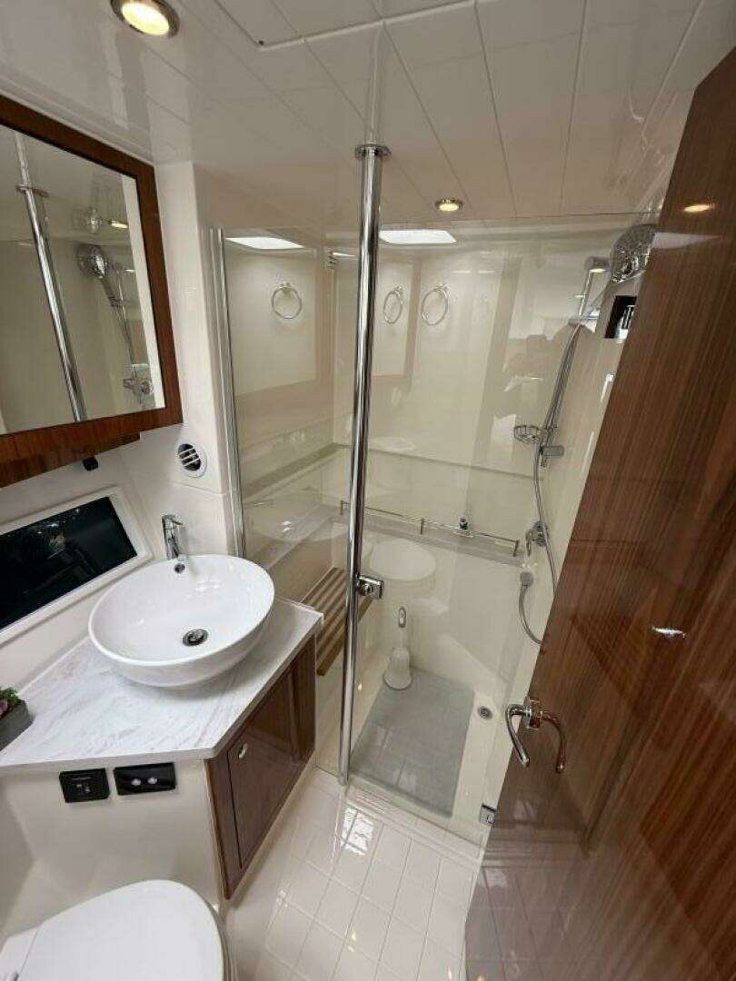 Equipped with SeaKeeper and a carbon fiber Freedom Lift for your tender.