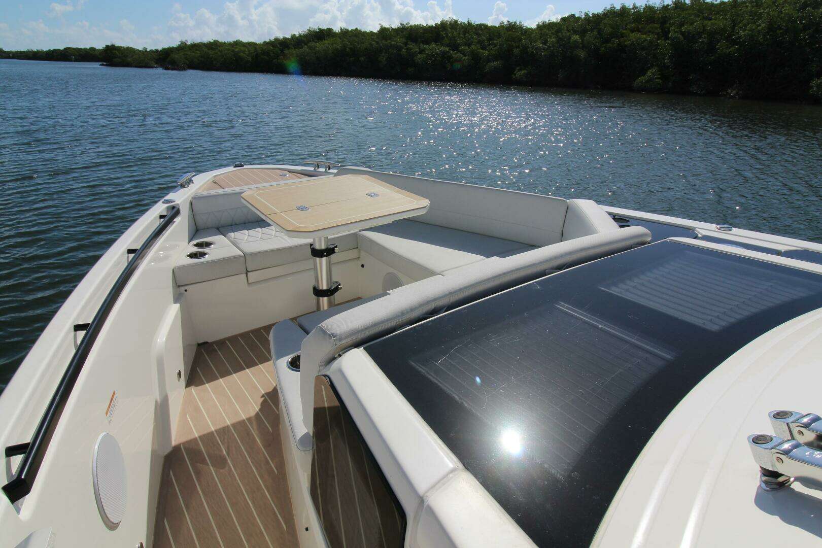 - Table in bow including table cover