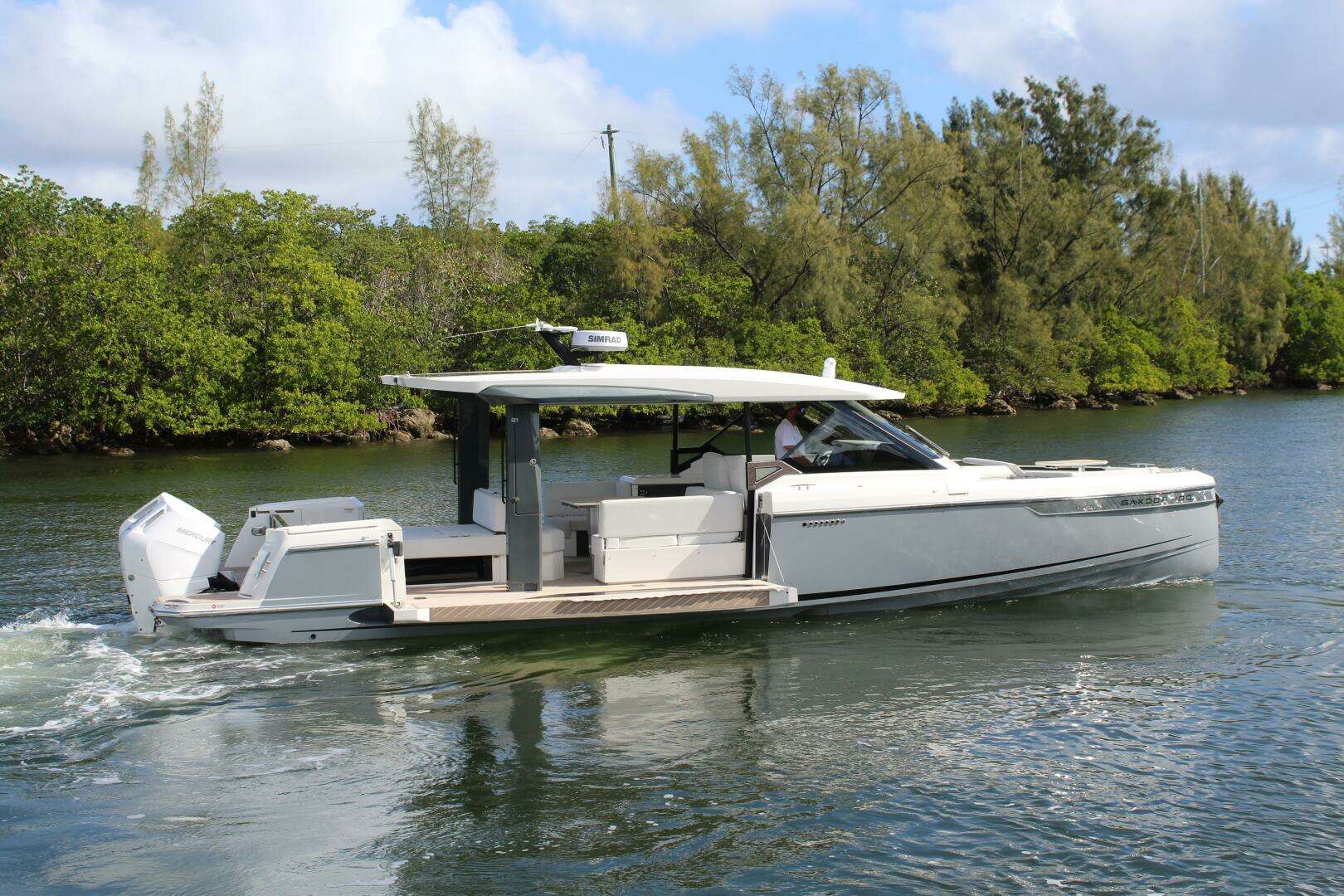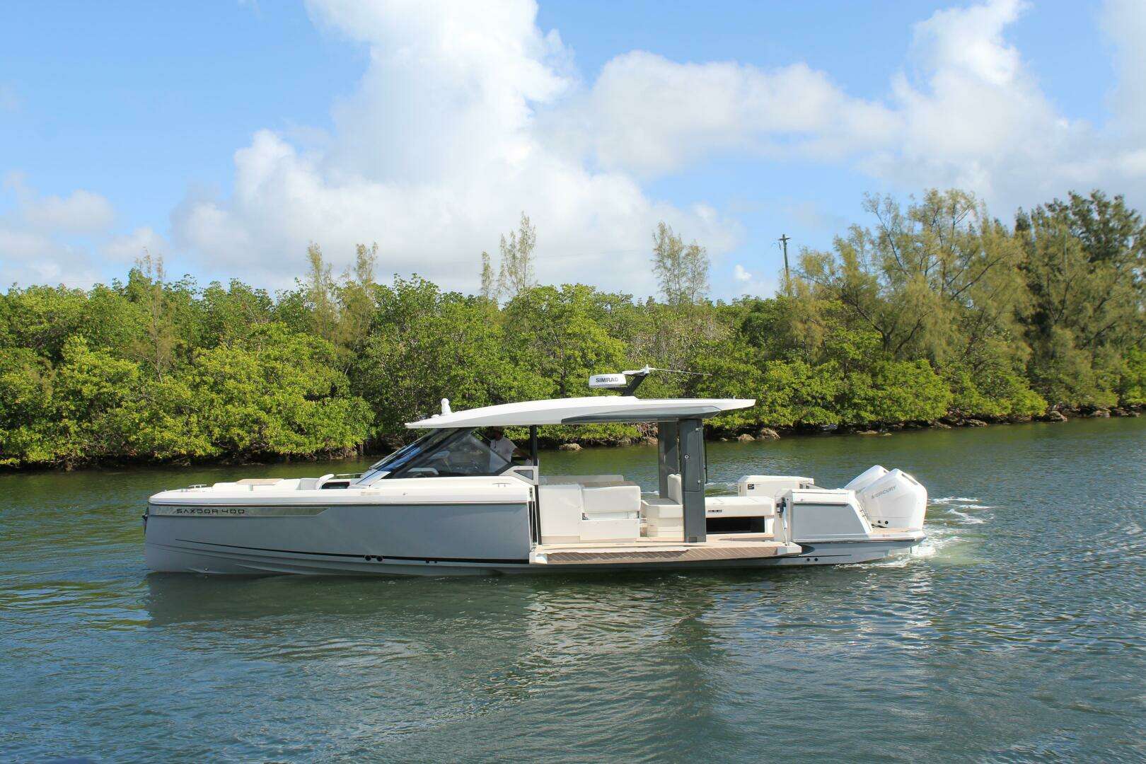 Powered by twin Mercury V10 400HP outboards (800HP total), the Saxdor 400 GTO offers thrilling performance with smooth handling and impressive efficiency thanks to its advanced twin-stepped hull design.