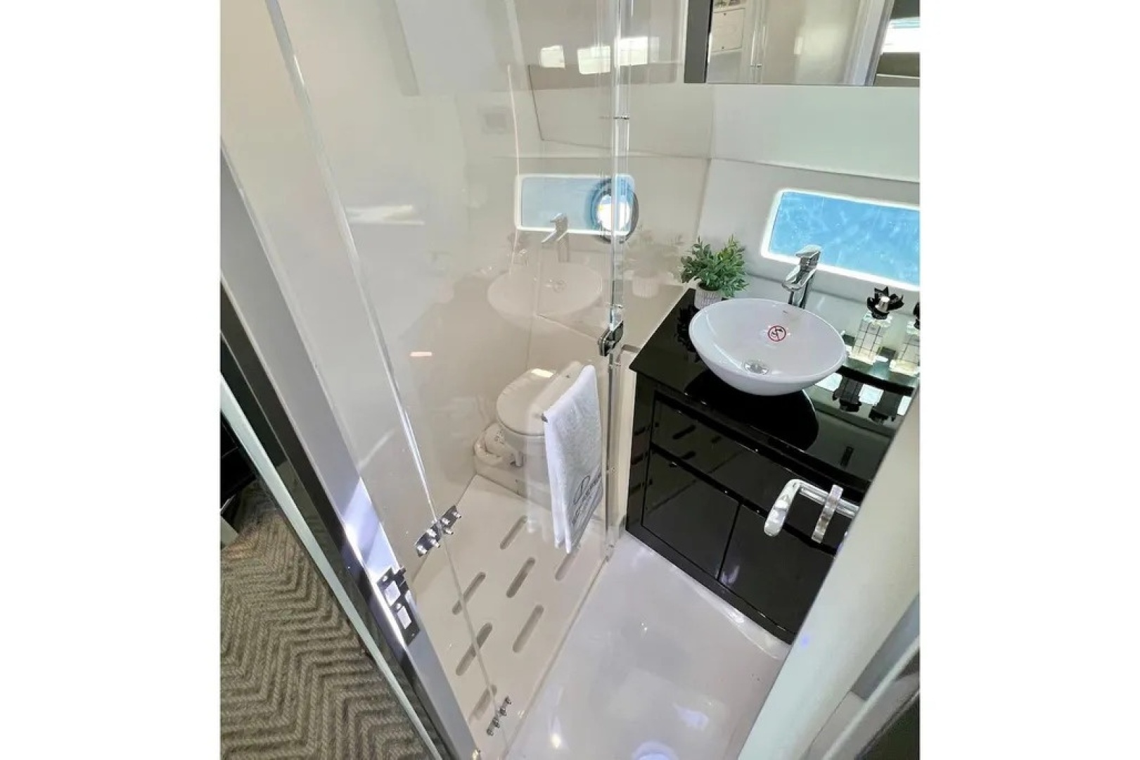 Below deck, this Schaefer 400 yacht features two private staterooms and two full heads, a rare configuration in this segment. With high ceilings, modern finishes, and a bright, open feel, the interior offers the comfort and refinement of a much larger yacht—ideal for weekend getaways or extended cruising.