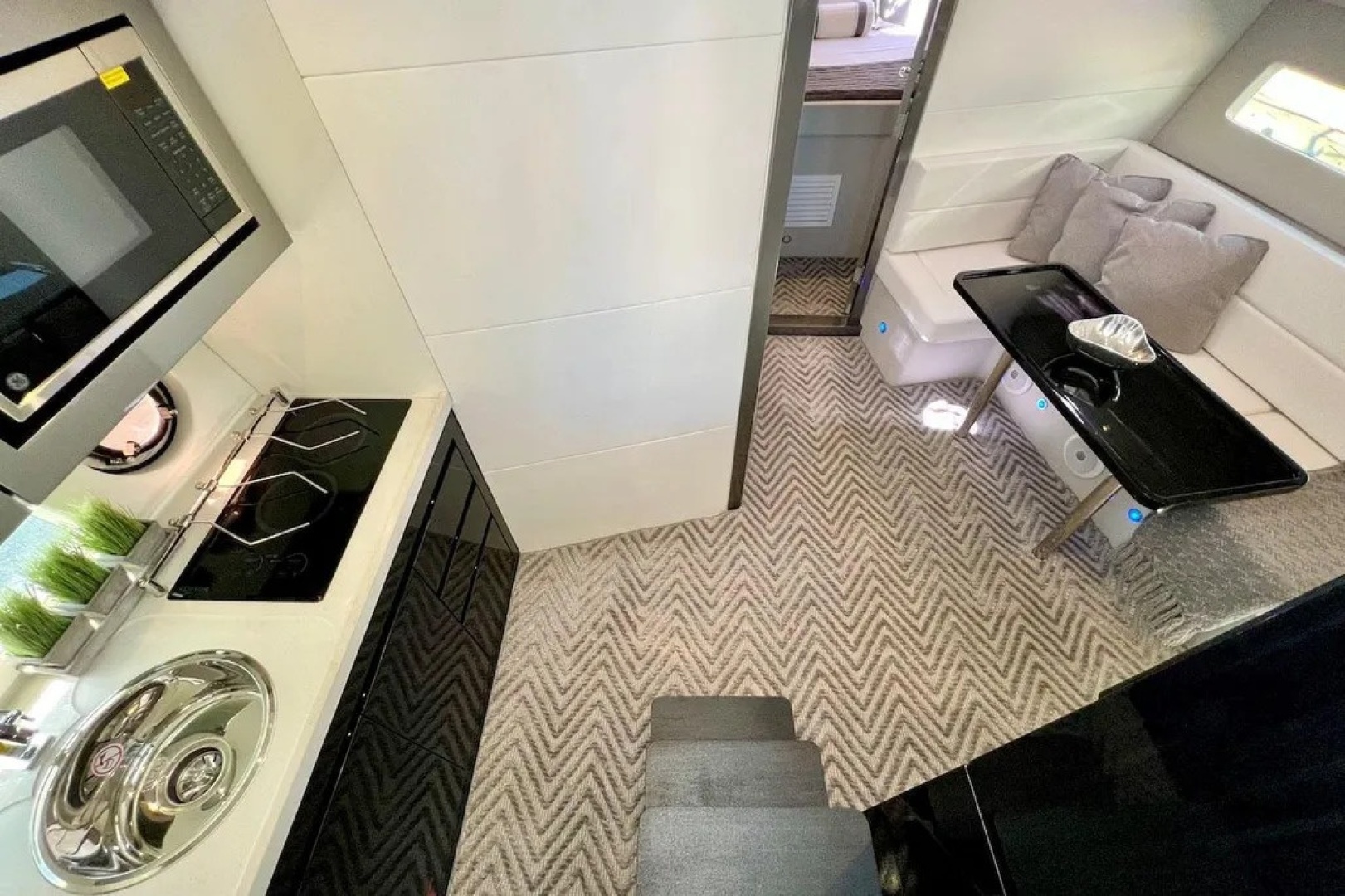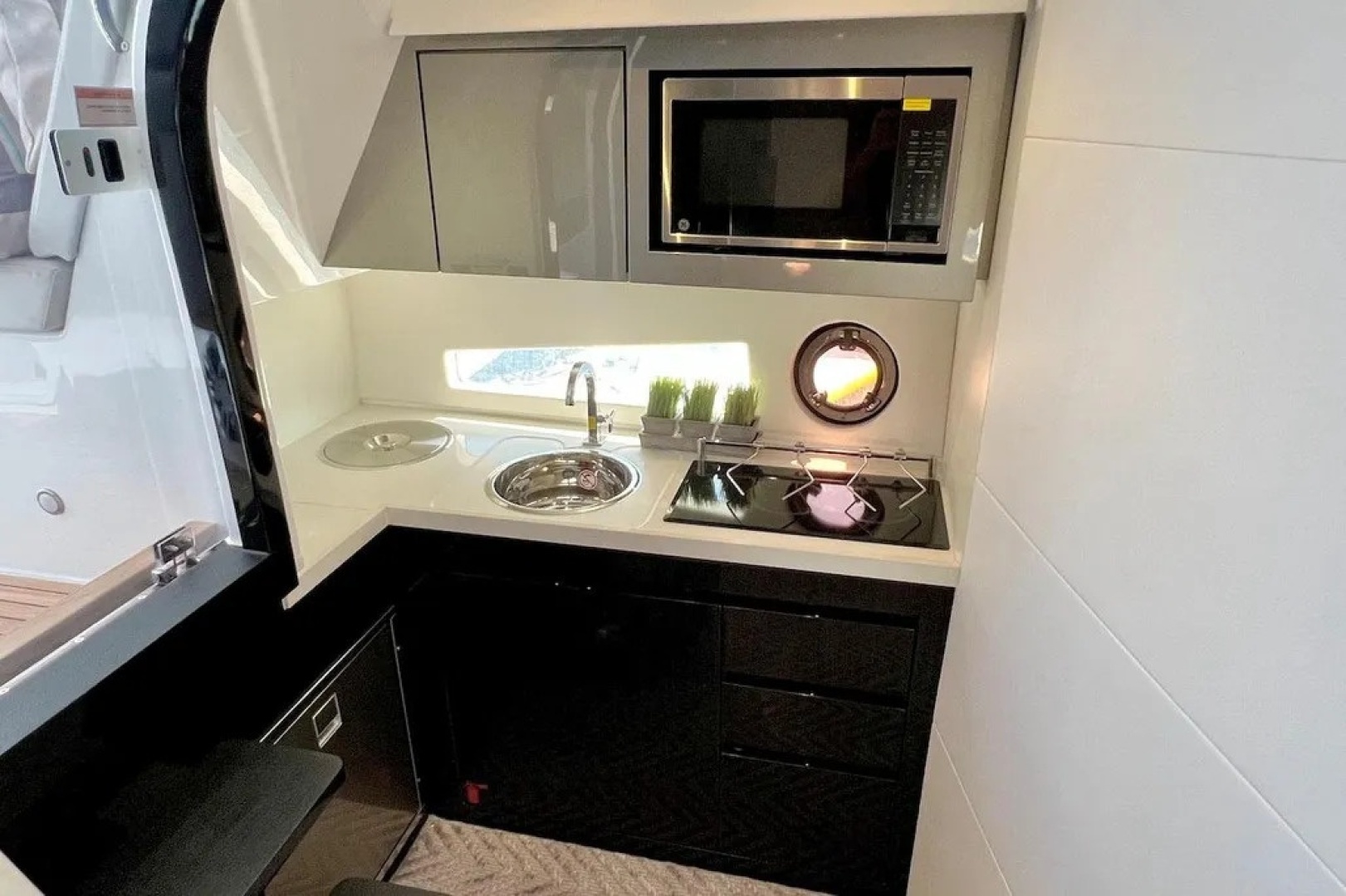 - Microwave & cooktop in galley
