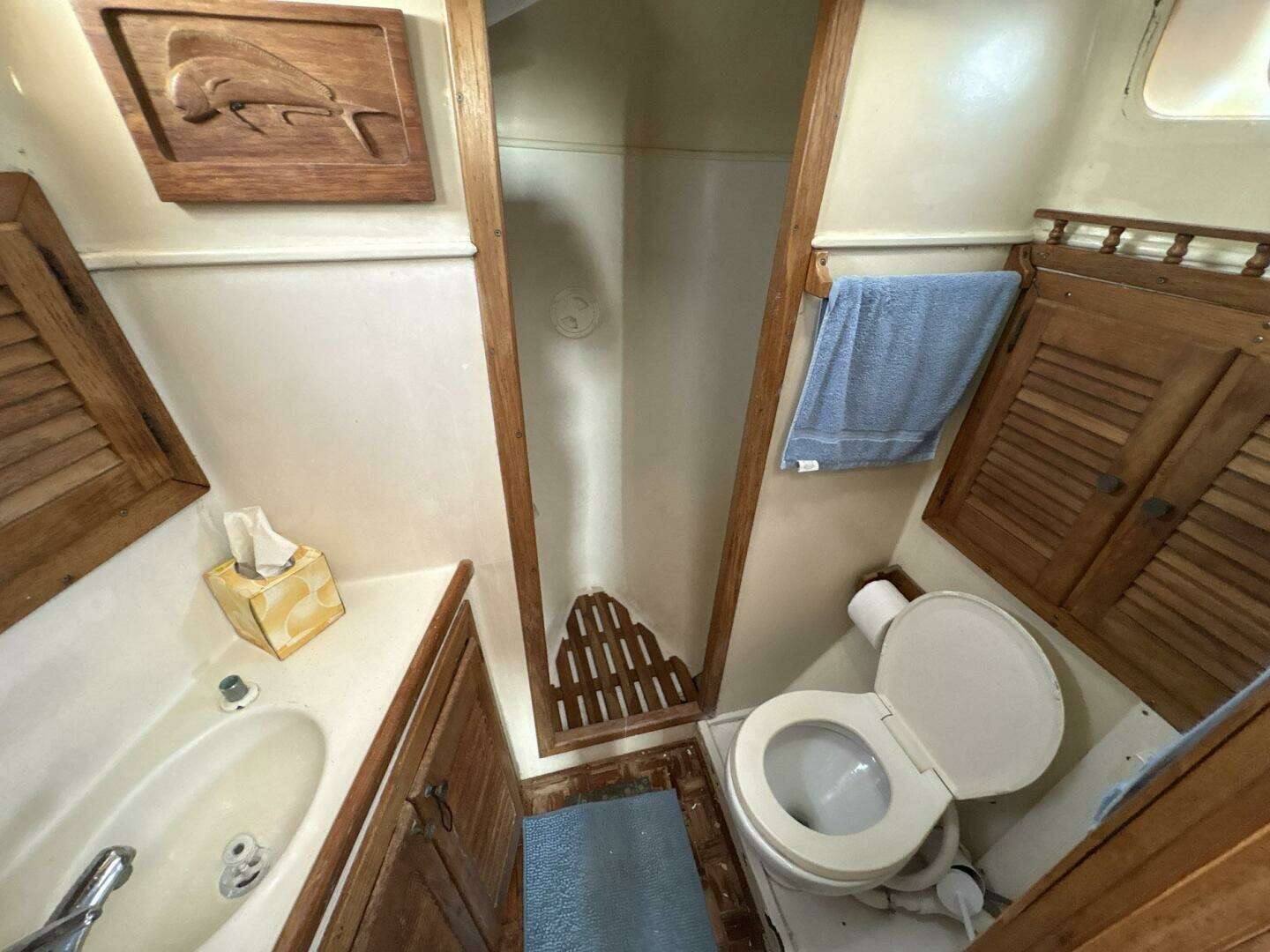 - Stand-Up shower—one of the best layouts you’ll find on a boat this size