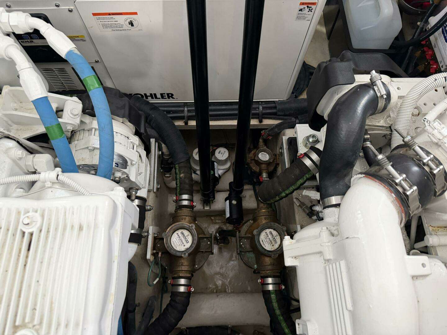 "Aquarius" only has 342 hrs on twin Cummins QSB 6.7L 480 T3 (459hp) and 743 on the Onan generator.