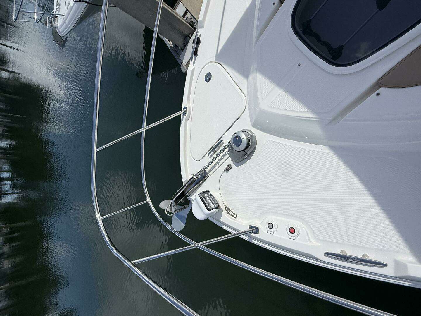 The bow is equipped with the usual ground tackle expected on a 40 ft yacht, plus massive a sun-pad seating area with adjustable reclining backrest that make for the perfect spot sunbathing , or to relax in the shade provided by the optional large European sun shade.