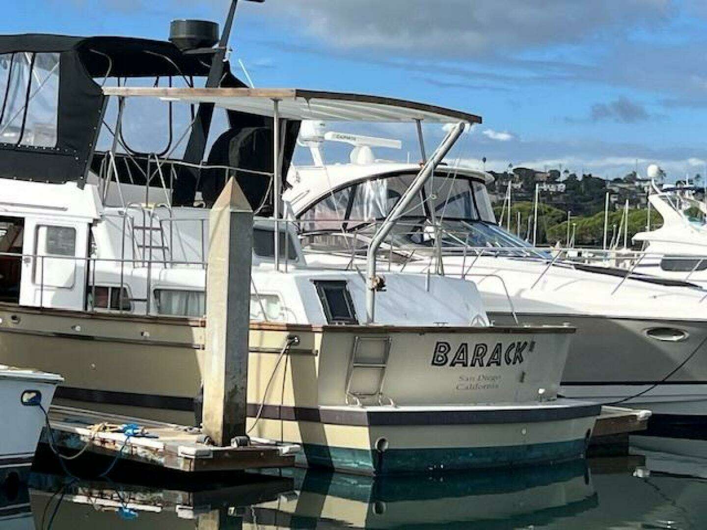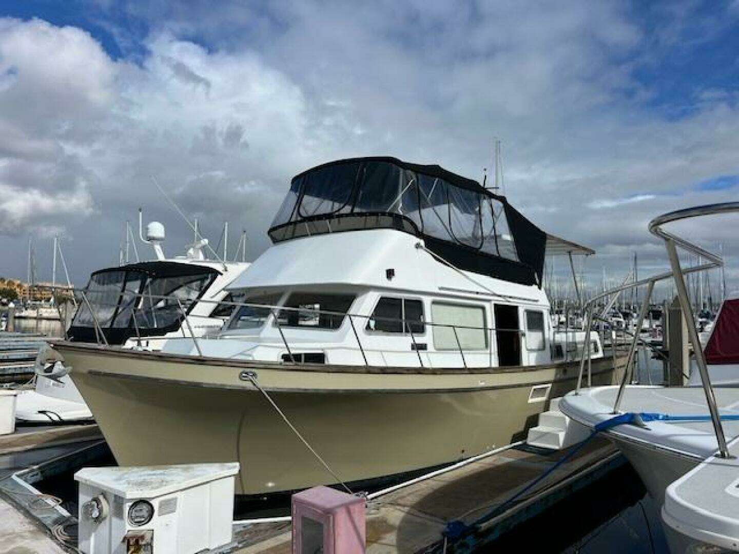Project Vessel Now at 1/2 value Running cummins diesel motors Yanmar generator V Birth ( 2 single beds) Aft cabin, King size bed. 1.5 bath 2 bed condo.