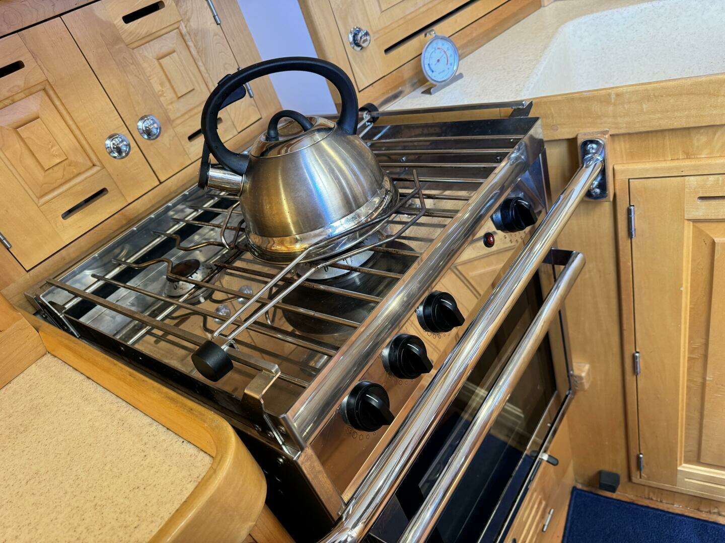 - Force 10 gimballed stainless propane 3-burner stove with adjustable fiddles