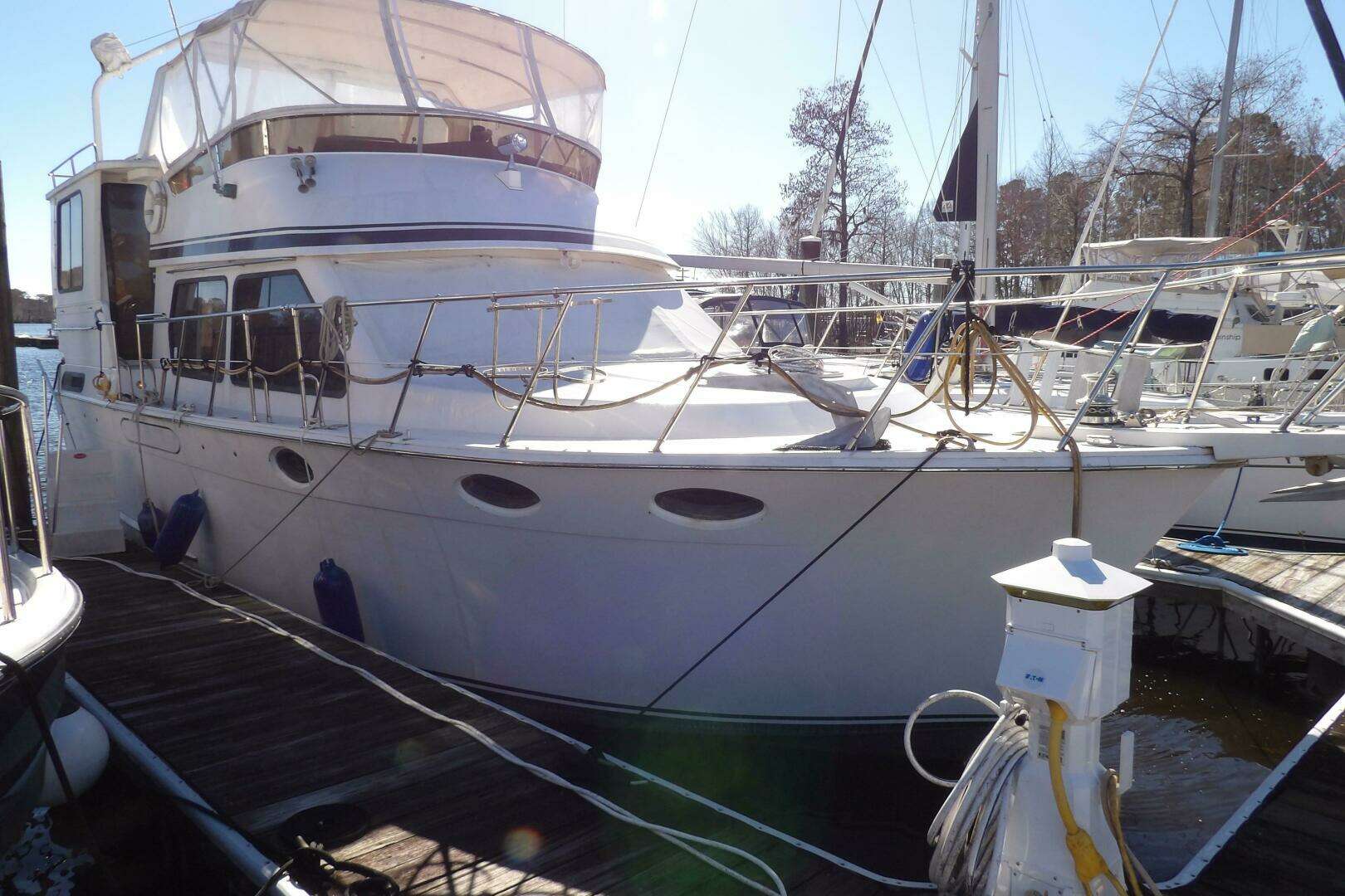 This 1988 Aquarius 41 Sundeck Aft Cabin Trawler, offers a classic design with a great layout. Powered by twin 320 HP Cummins VT-555-M-BC Diesel Engines, and an Onan Diesel Generator. Accommodations include a large, Covered Sundeck, Flybridge with plenty of seating, a Spacious Salon, a Full Galley down with dinette, Two Comfortable Cabins, and Two Heads, providing ample space for relaxation and privacy during your voyages. This trawler is perfect for those seeking adventure on the open seas or tranquil weekends at the dock..