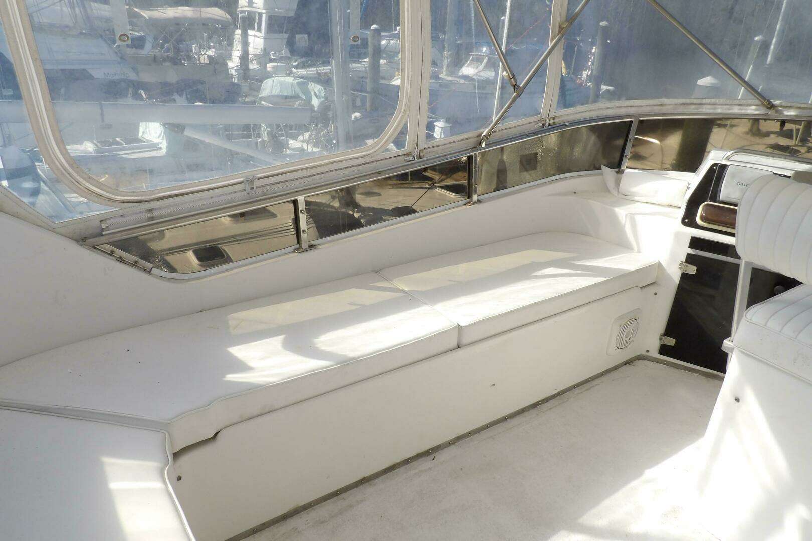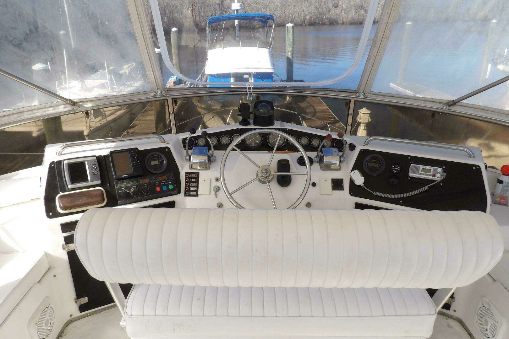 This 1988 Aquarius 41 Sundeck Aft Cabin Trawler, offers a classic design with a great layout. Powered by twin 320 HP Cummins VT-555-M-BC Diesel Engines, and an Onan Diesel Generator. Accommodations include a large, Covered Sundeck, Flybridge with plenty of seating, a Spacious Salon, a Full Galley do