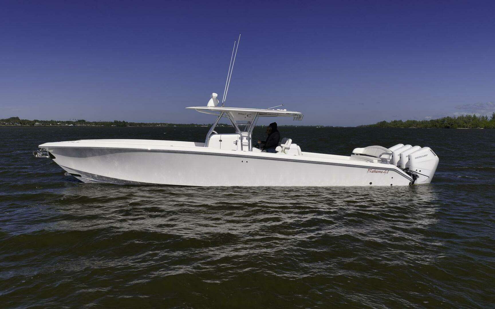 Introducing the stunning 2024 Bahama 41 Raised Deck (RD), a new center console boat that epitomizes luxury and performance. With an overall length of 41.25 feet, this vessel boasts a sleek fiberglass monohull design, ensuring both durability and elegance on the water. Powered by four Mercury V10 outboard engines, each delivering an impressive 400 hp, the Bahama 41 achieves exhilarating cruising speeds of 46 mph and a maximum hull speed of 70 mph, perfect for thrilling adventures. Designed for comfort and convenience, this boat accommodates up to 12 passengers, making it ideal for family outings or entertaining friends. Equipped with joystick control for effortless maneuverability, with a remarkable range of 500 miles, this boat is ready to take you on unforgettable journeys. Experience the perfect blend of style, power, and functionality with the Bahama 41 RD.