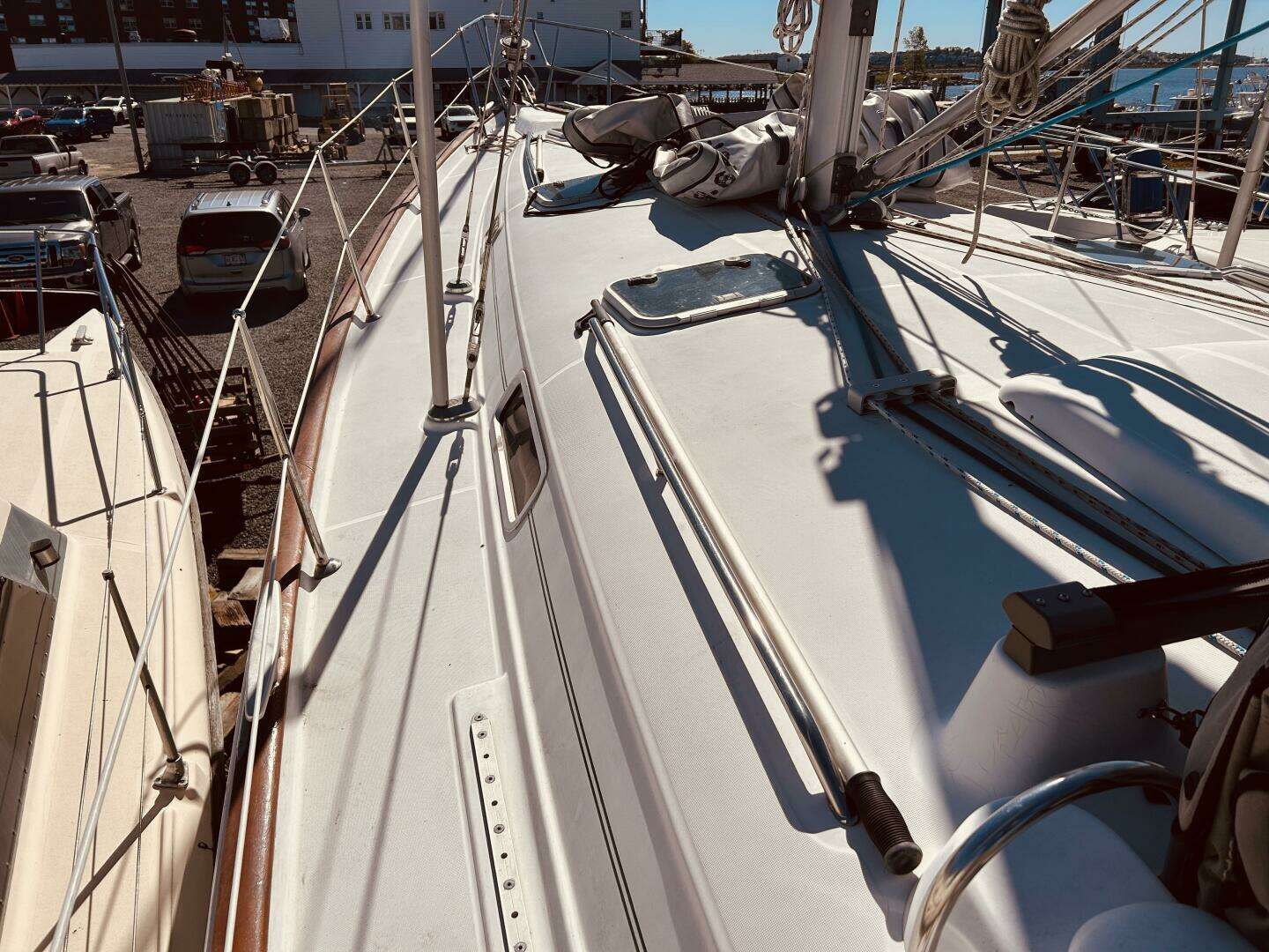 The decks are a sandwich construction with Balsa coring. The non-skid is a light grey molded pattern. The wide side-decks offer easy movement fore and aft and the raised bulwarks provide additional security. Features and equipment include: