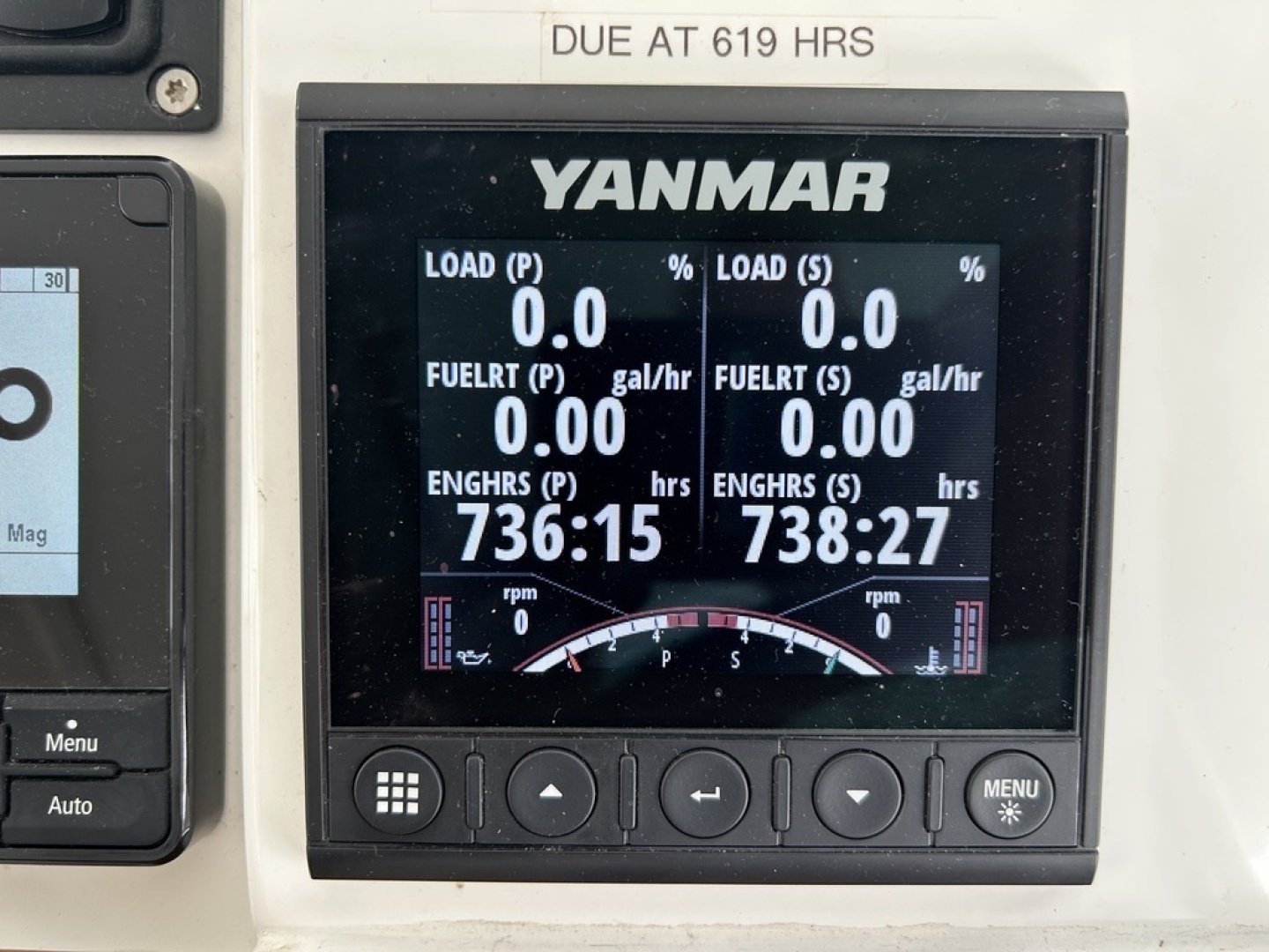- Twin Yanmar 320 hp inboard diesel engines (Port:738 Starboard:740Hours)