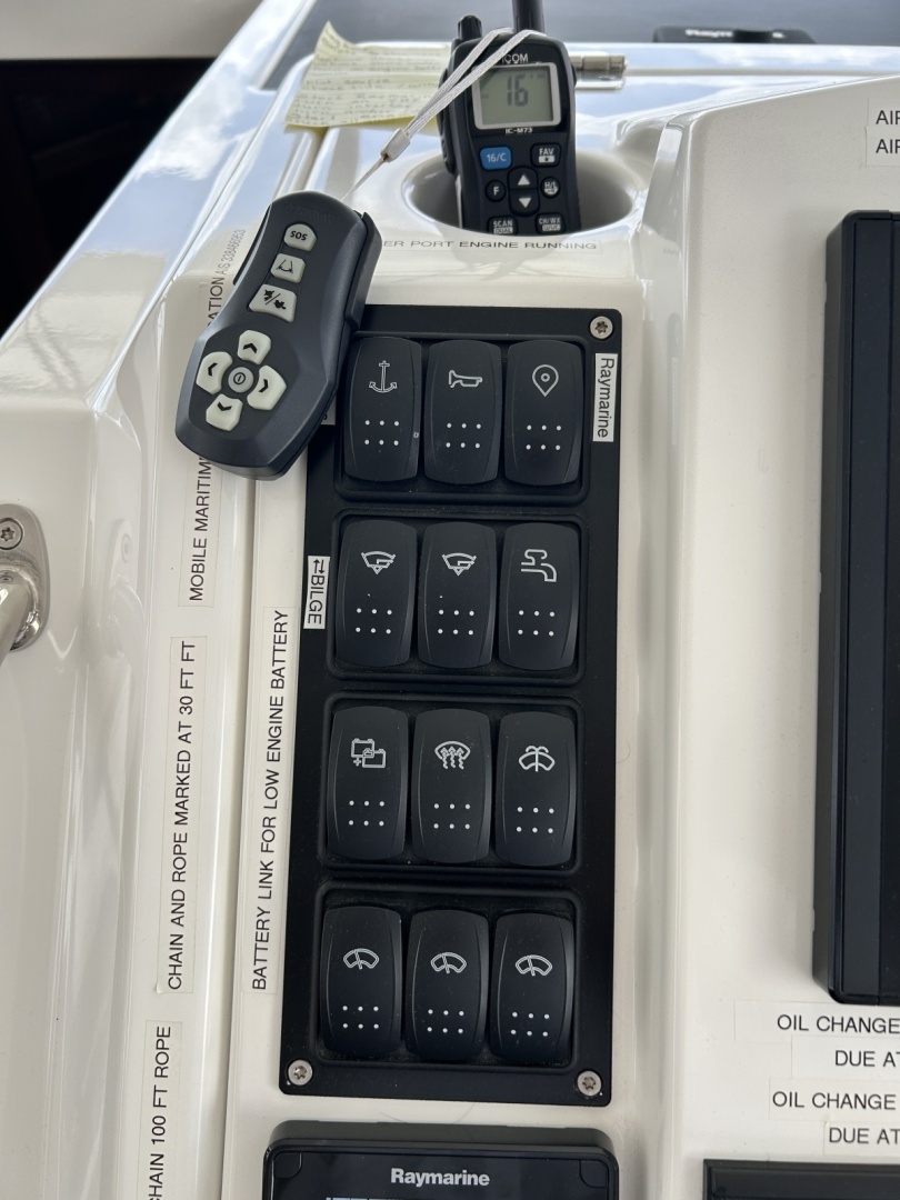 - 12 vdc outlet on the flybridge and at the pilothouse helm