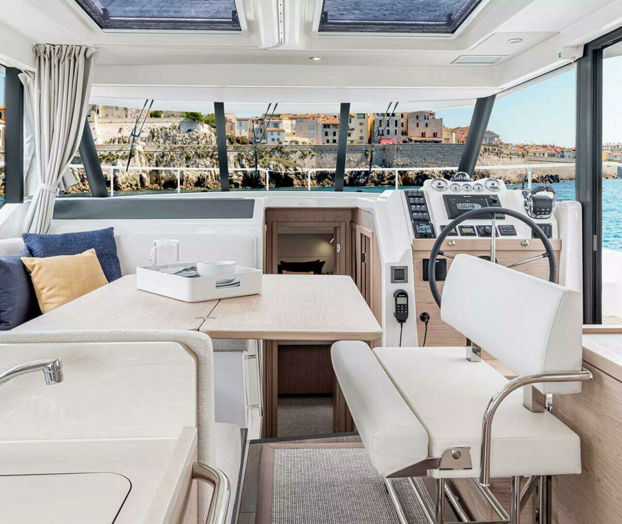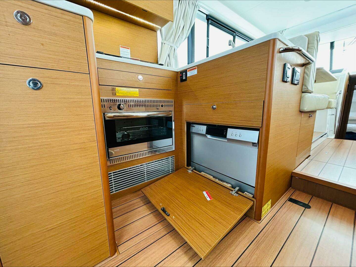 The ST 41 is the perfect size for either long-range cruising or short excursions. Extended stays onboard are a breeze with the conveniences of a washer/dryer combo, a dishwasher, and ample storage space. A notable upgrade is the Hurley H2O Dinghy Davit System, which provides easy storage and launching of your dinghy.
