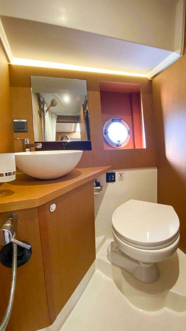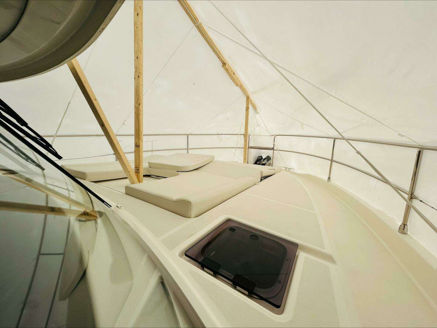 Bask in the scenic views of your surroundings from your flybridge! Up there, you can cook delicious meals on your grill and keep cold drinks in the mini fridge. If the sun gets too strong, simply raise the bimini for some shade.