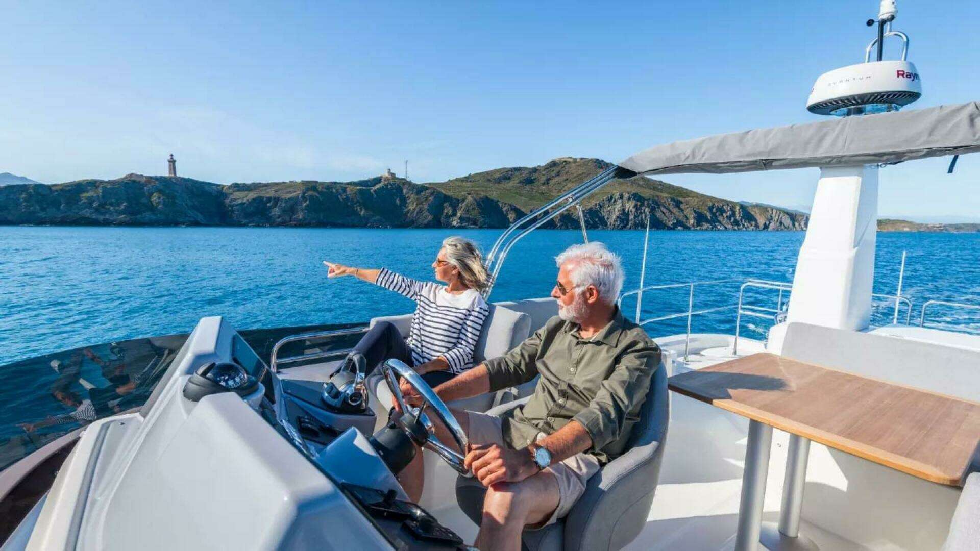 Brightness, user-friendliness and comfortable living characterize the welcoming yet practical spaces of the Swift Trawler 41. There are lots of innovative solutions making life easy aboard. The aft galley links seamlessly with the cockpit, which has a sliding bench making it easy to get to the swim platform. In the wheelhouse, the pilot site rotates, allowing eight passengers to sit down in the saloon. The lounge space converts to a comfortable double berth sleeping space, surrounded by a curtain for privacy. Below deck, the three cabins on board bring to 7 the number of passengers the boat can accommodate comfortably on this innovative family cruiser.