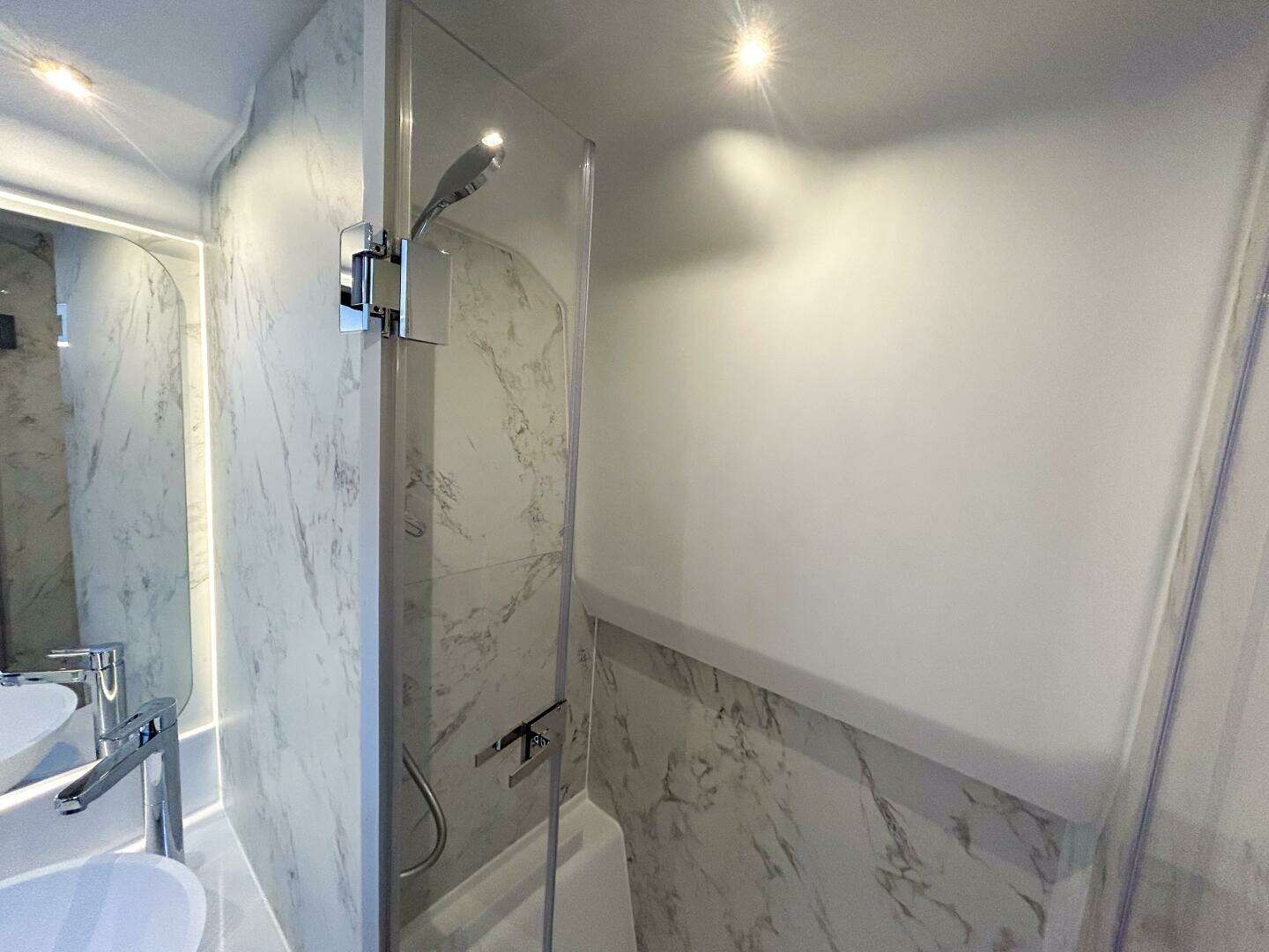 Calm interior spaces with ambient lighting embrace the new Gran Turismo’s design ethos of simplicity. The forward section flows to an island berth with ample storage, while the convertible midship berth offers a lovely, versatile space for movie night, storage, a quick nap, or whatever you feel up to. The full-size head and shower will remind you of the comforts of home. Thoughtful touches like ambient lighting, integrated reading lights, and soft-close drawers highlight the boat’s attention to detail, making the Gran Turismo 40 a perfect blend of sophistication and practicality for modern cruisers.
